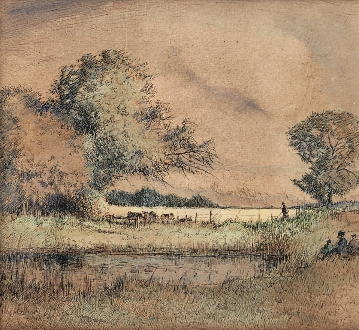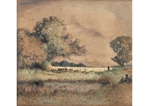 'עמק סקוטי' - ציור בן כמאה שנה, דיו ואקוורל על נייר