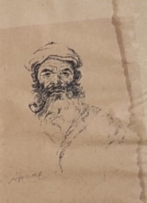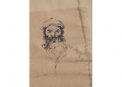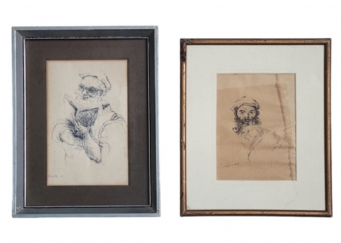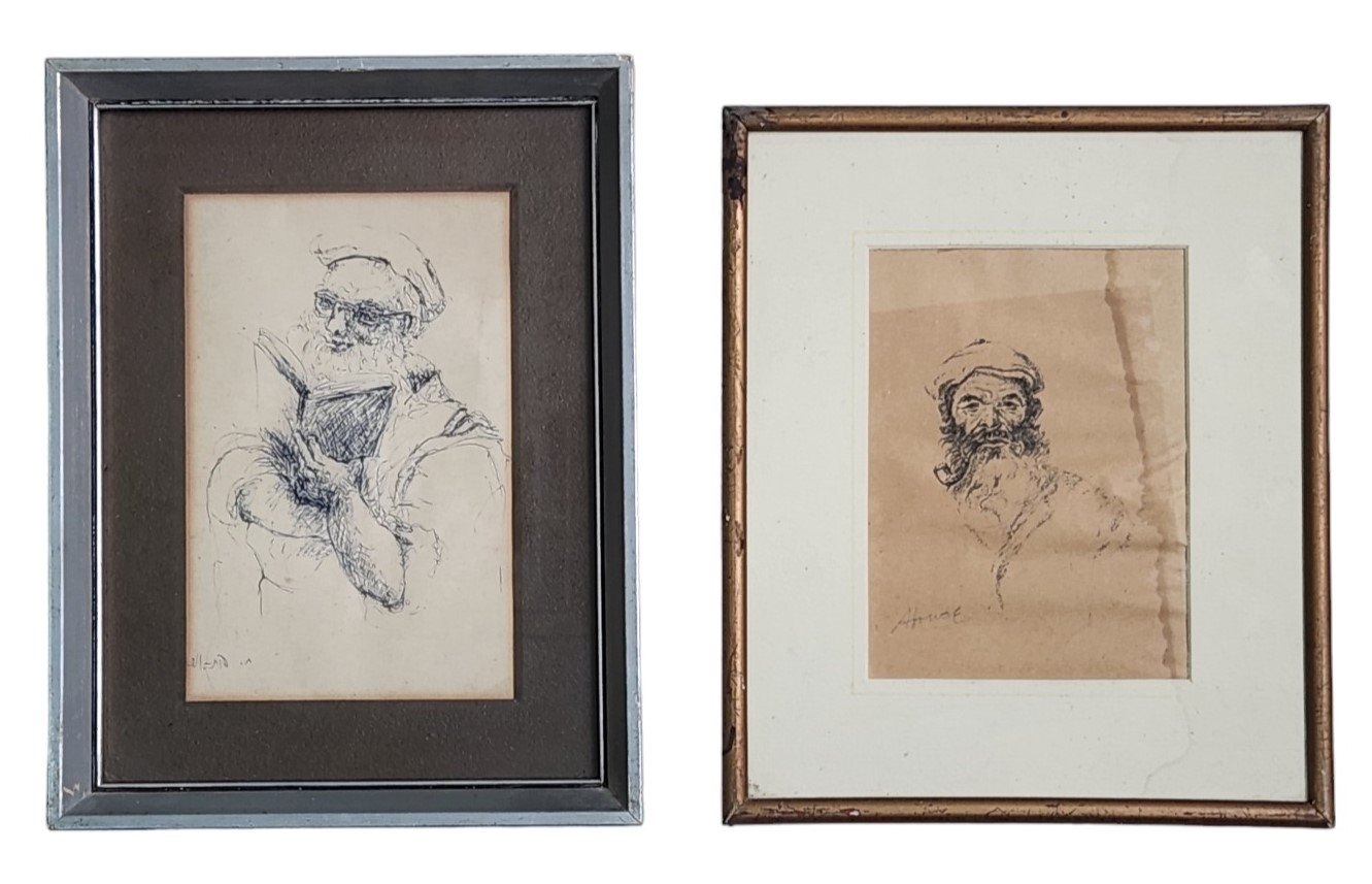 'יהודים' - לוט של 2 תמונות שונות, האחת עט על נייר, חתומה, והשנייה תצריב (כתמים), חתום בעיפרון (נשמח לעזרה בזיהוי האמנים), מידות בהתאמה: 18.5X13.5 ס"מ, 21.5X14 ס"מ, מידות המסגרת בהתאמה: 31.5X26.5 ס"מ, 32.5X25 ס"מ.