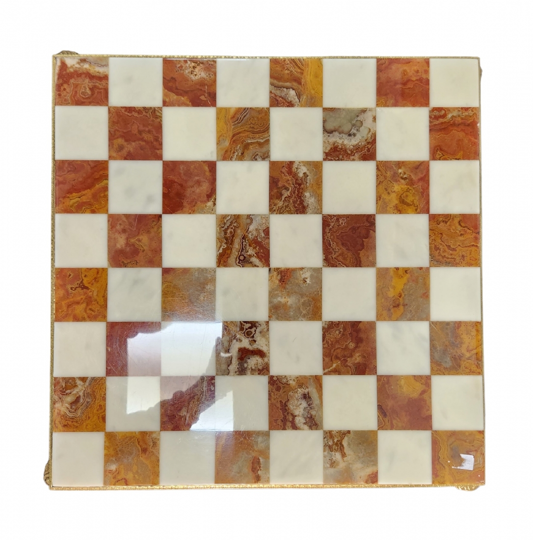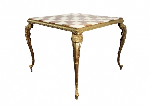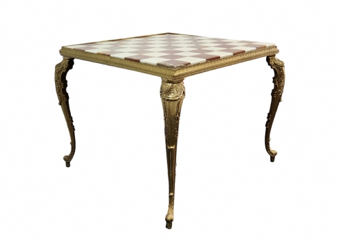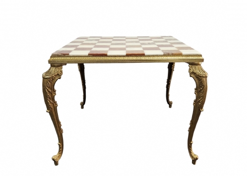 שולחן שחמט / דמקה דקורטיבי סלוני עשוי פליז יצוק ומשטח עליון עשוי שני סוגי אוניקס