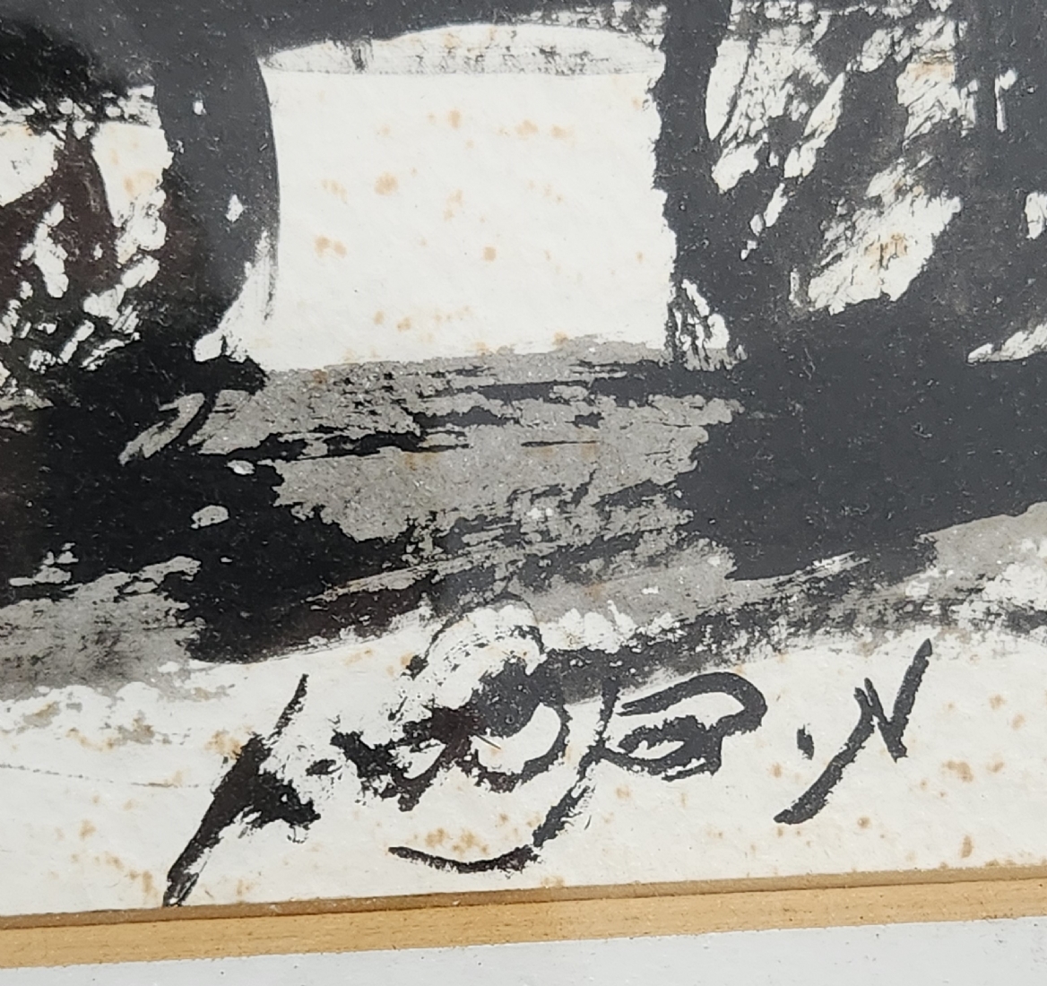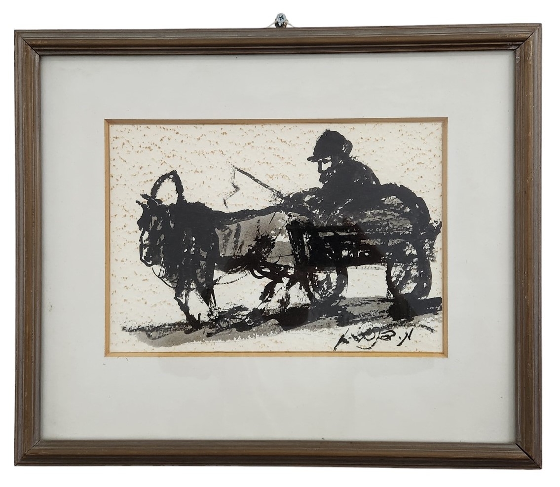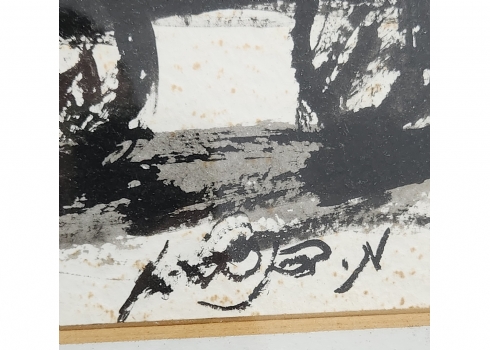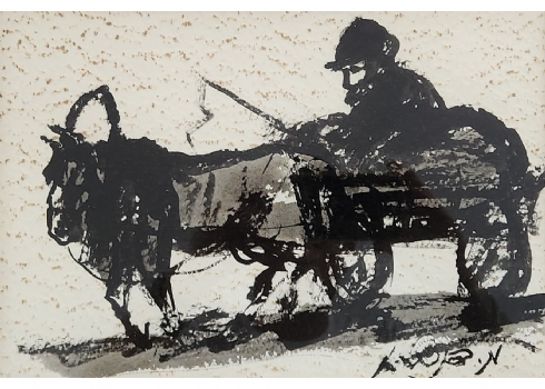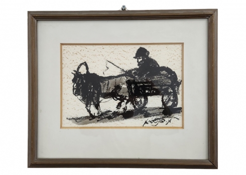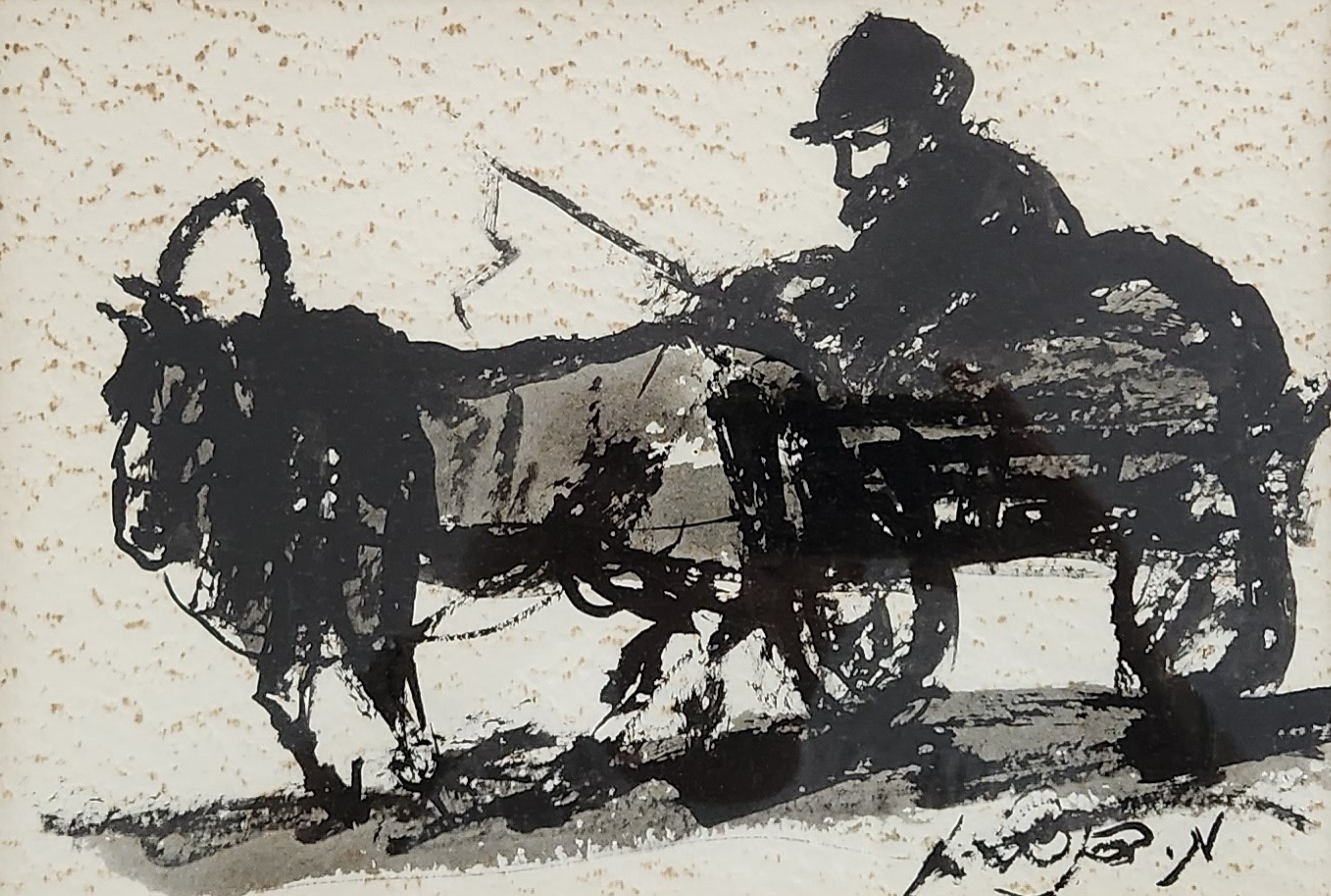 משה ברנשטיין (Moshe Bernstein) - 'עגלון' - גואש שחור על נייר, חתום, מידות: 22.5X33 ס"מ, מידות המסגרת: 43X51 ס"מ.