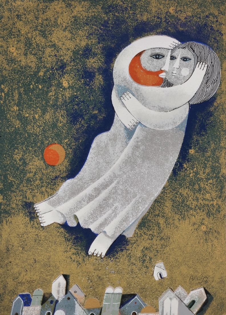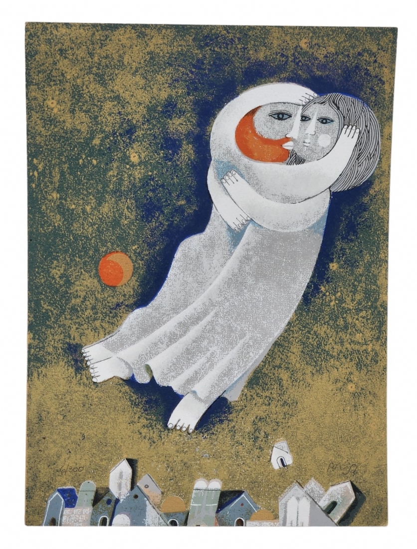 סמי בריס (Sami Briss) - 'קדושת הנאהבים' - ליטוגרפיה חתומה בעיפרון וממוספרת 6/300, ללא מסגרת, מידות: 40.5X29.5 ס"מ.