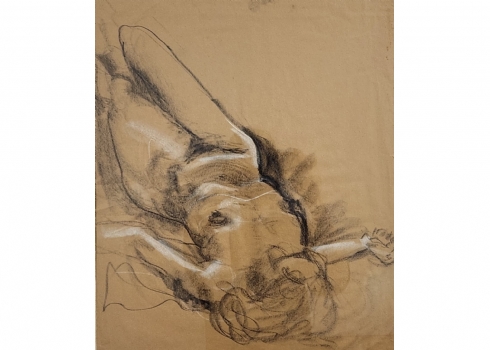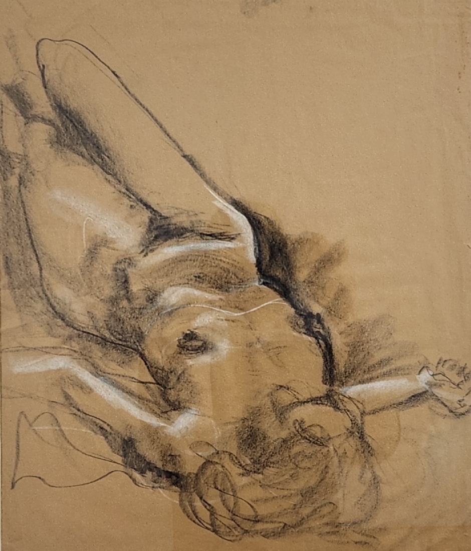 'עירום נשי' - רישום פחם וגירי פנדה על נייר