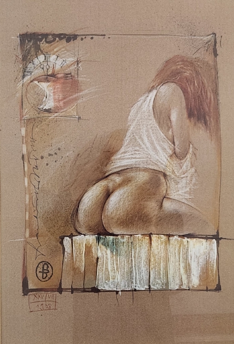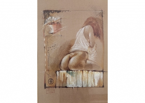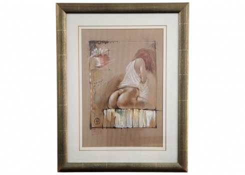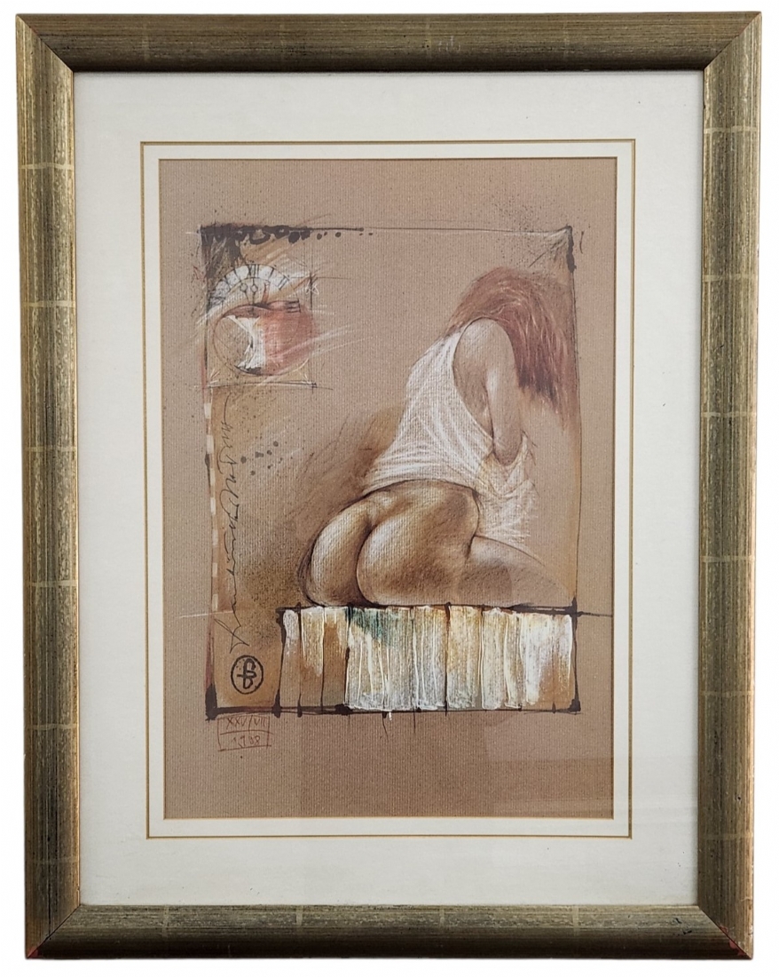 'גב נערה' - ליטוגרפיה, חתומה ומתוארכת 1998 בפלטה, מידות: 57X39.5 ס"מ, מידות המסגרת: 81.5X64 ס"מ.