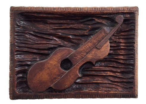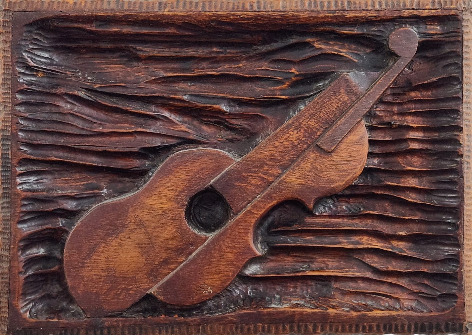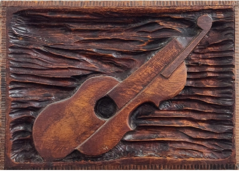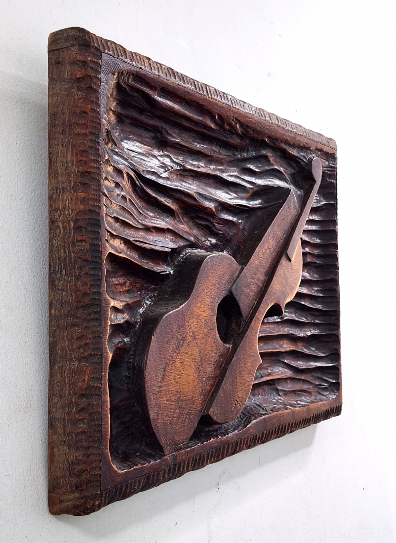 'וויולינה' - תבליט עץ מאסיבי, עשוי עבודת יד אמן, חתום GOREN, צ'יפ לפינת המסגרת, מידות:43.5X60.5 ס"מ.