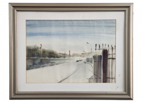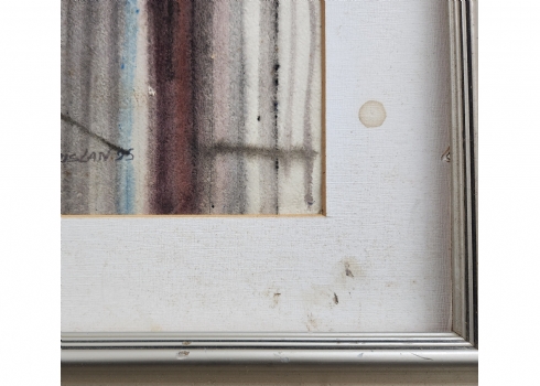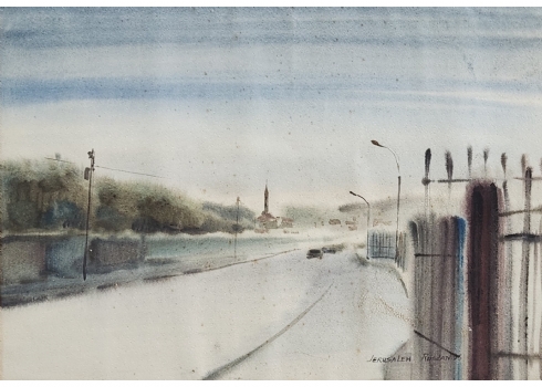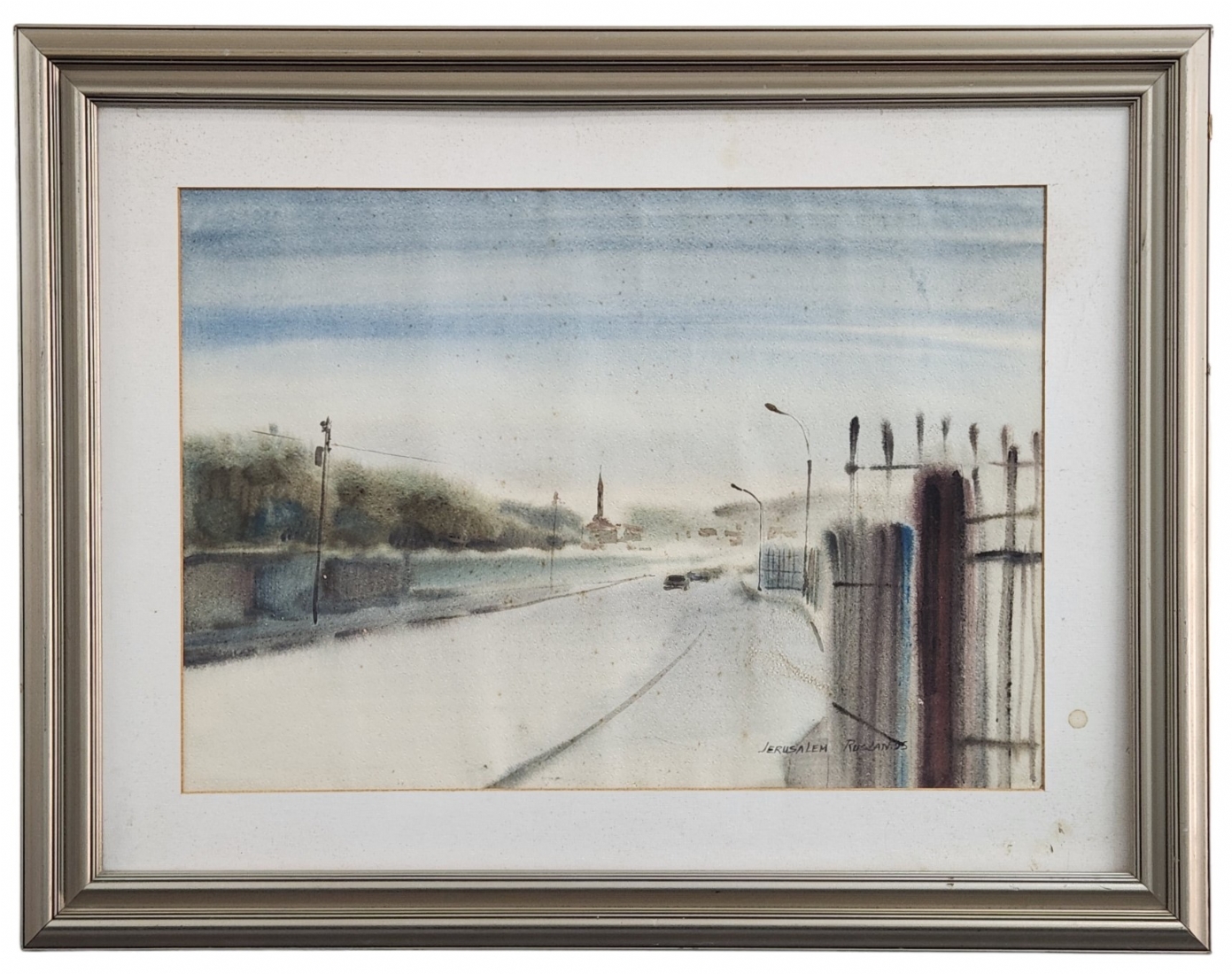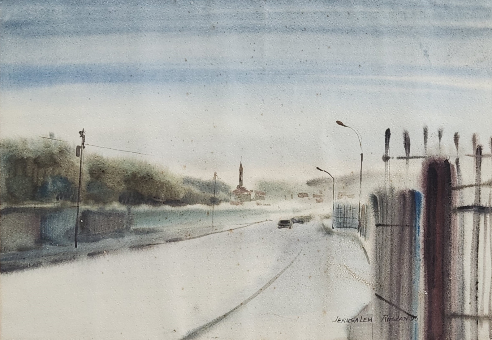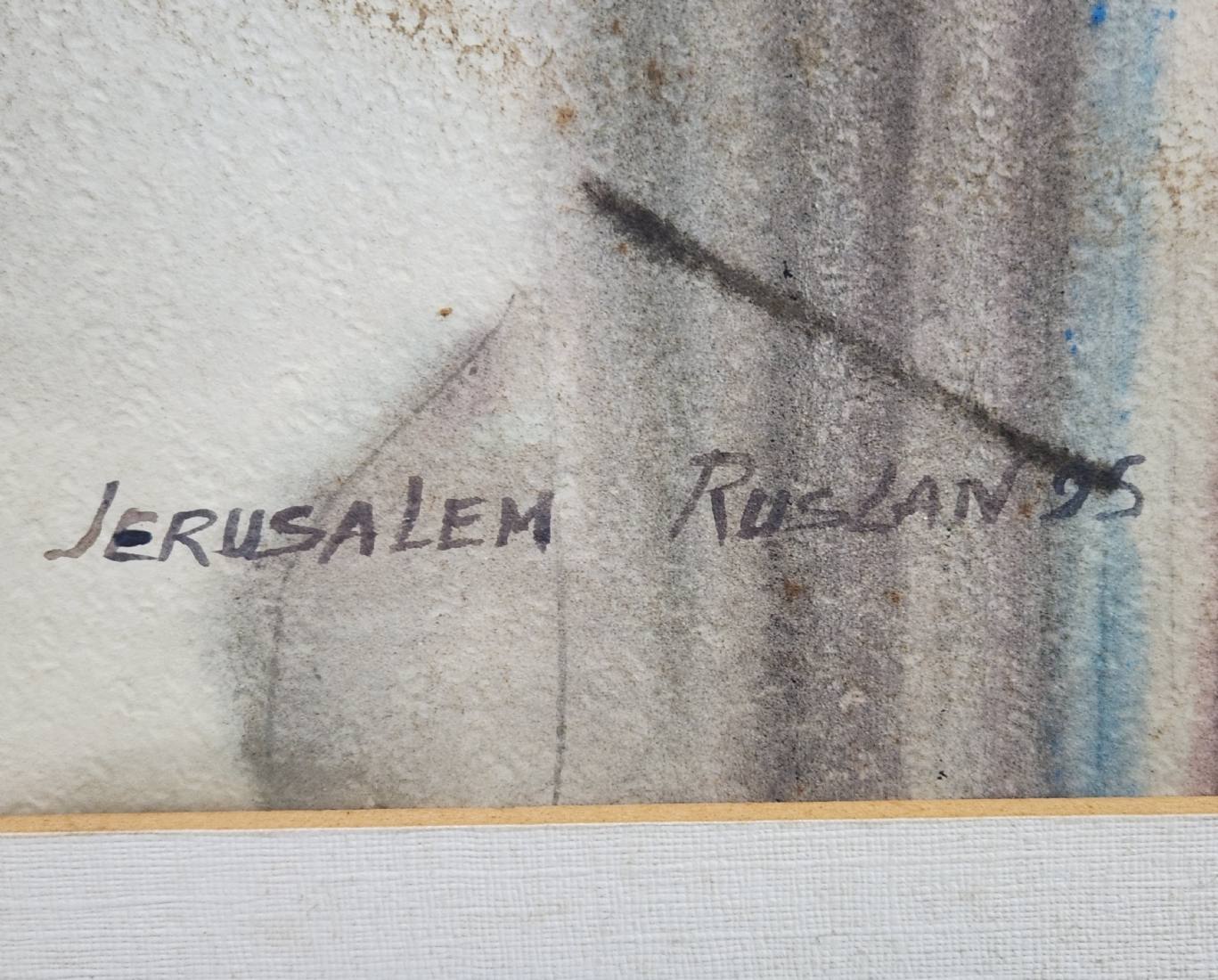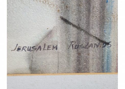 'ירושלים' - אקוורל על נייר, חתום RUSLAN, מתוארך 1995, ונושא את שם היצירה, מידות: 49X70 ס"מ, מידות המסגרת: 74X95.5 ס"מ.