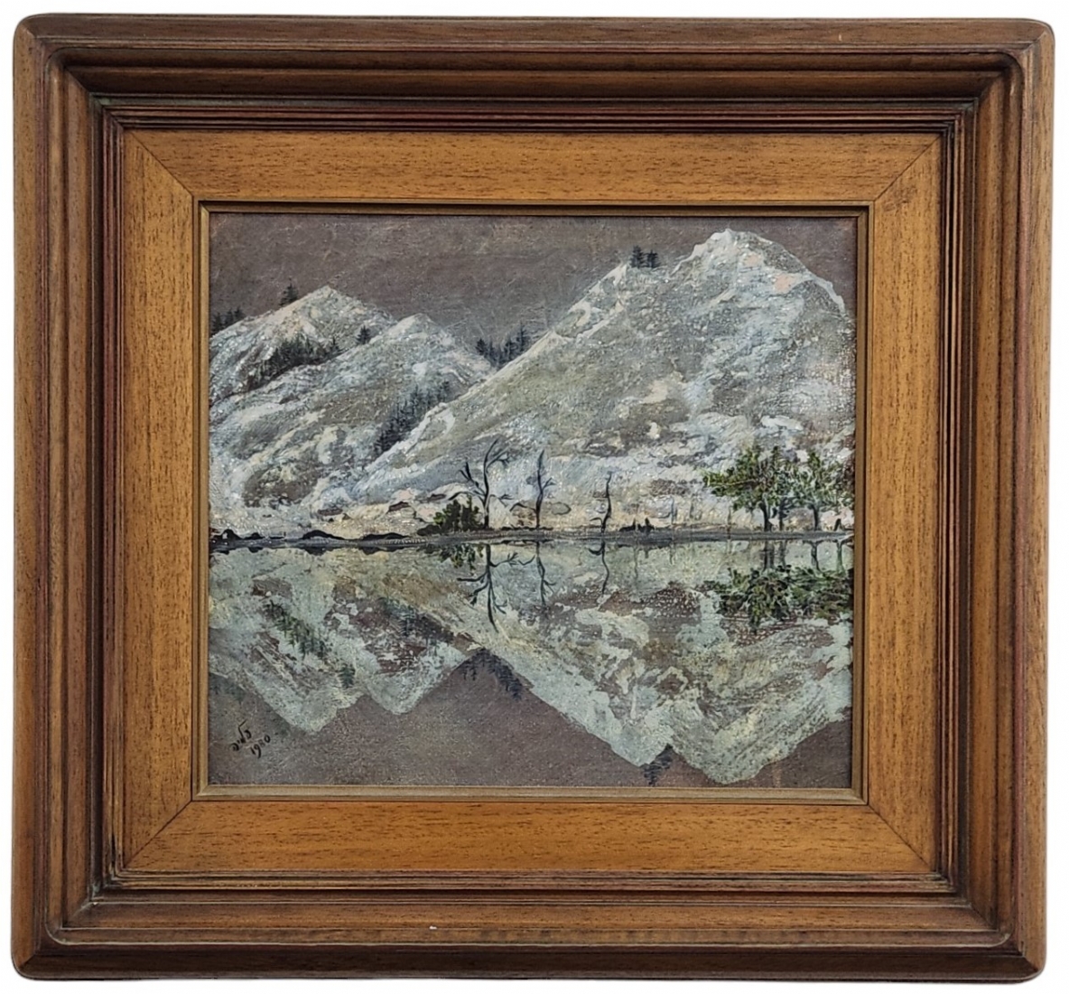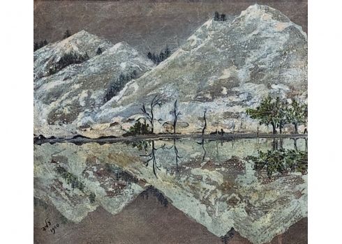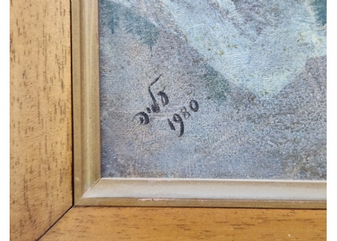 עליה קולבר - ציור שמן על לוח, חתום: עליה ומתוארך: 1980, מספר קילופי צבע קטנים, מידות: 38X42 ס"מ, מידות המסגרת: 61X66 ס"מ.
