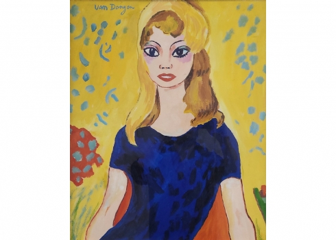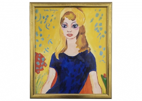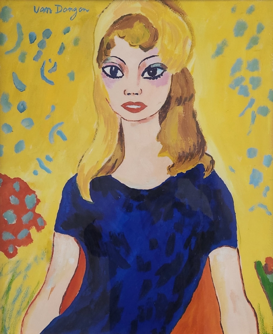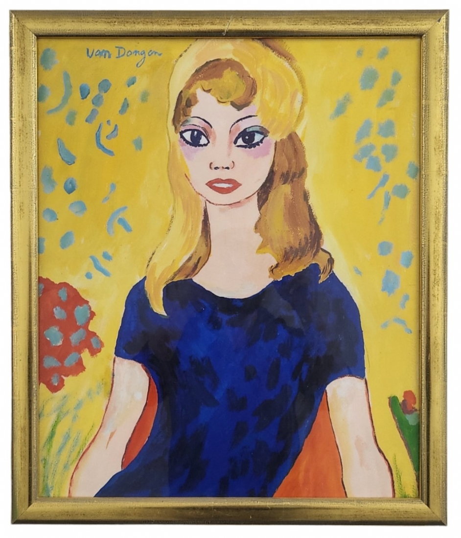 'בריג'יט בארדו' – ציור ישן, גואש על נייר, על פי ציורו הנודע של הצייר ההולנדי הנודע: 'קורנליוס תאודורוס מריה "קס" ואן דונגן', מידות: 60X50 ס"מ, מידות המסגרת: 66X55 ס"מ.