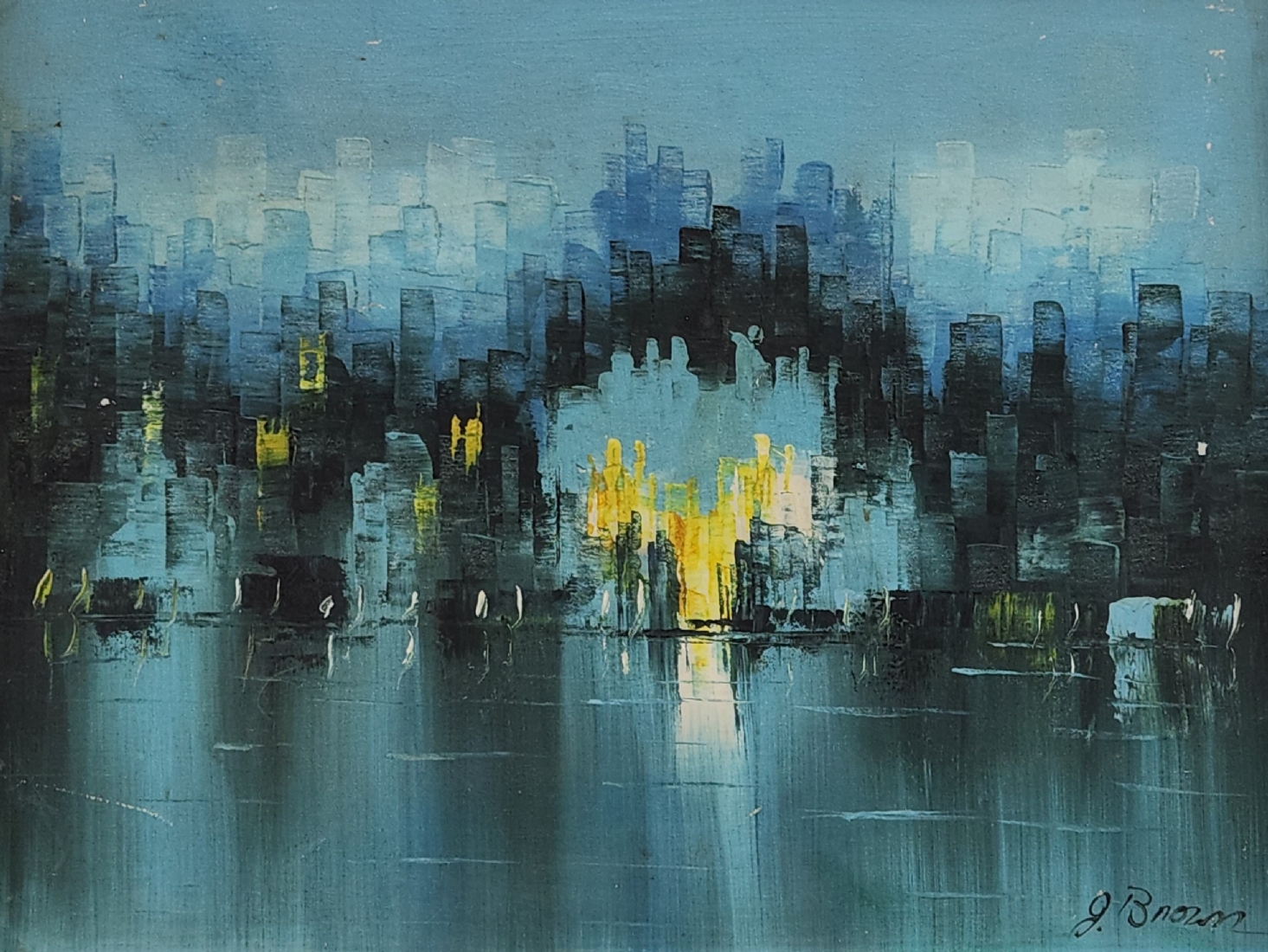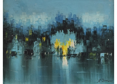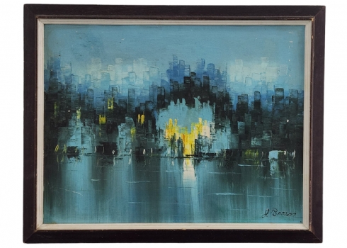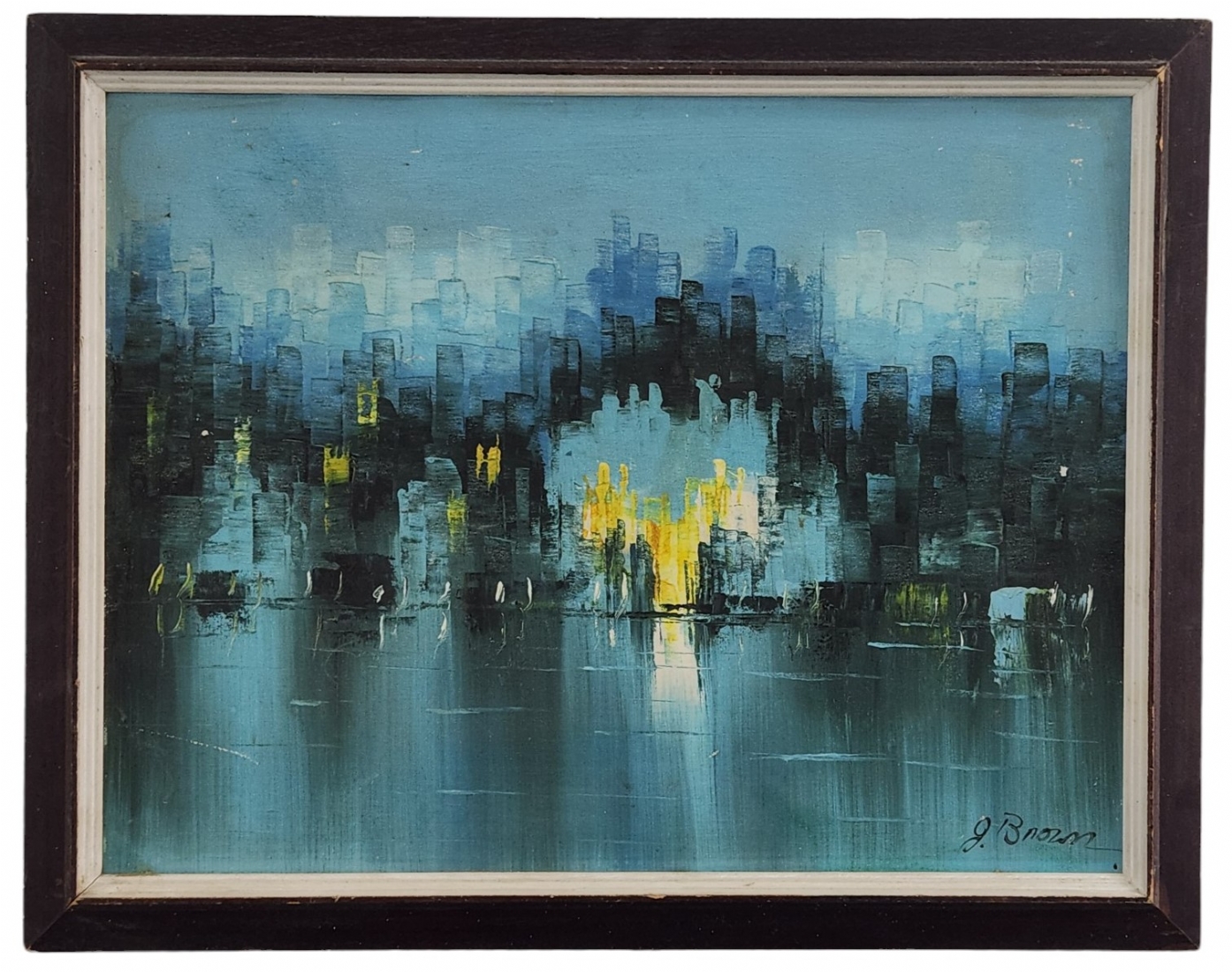 'עיר שמש וים' - שמן על לוח, חתום, מידות: 44.5X59 ס"מ, מידות המסגרת: 54X67 ס"מ.