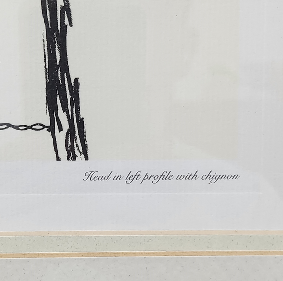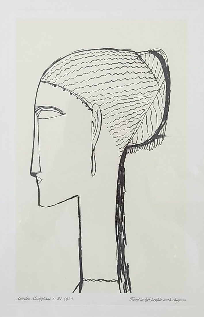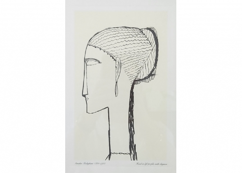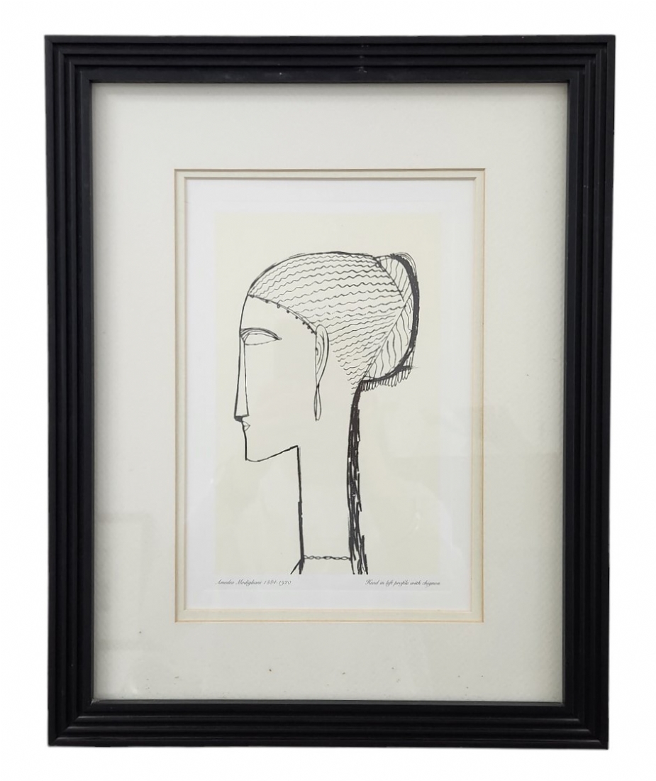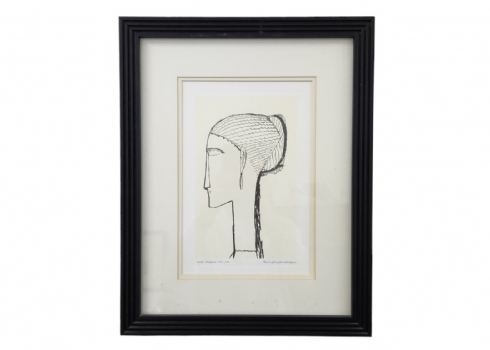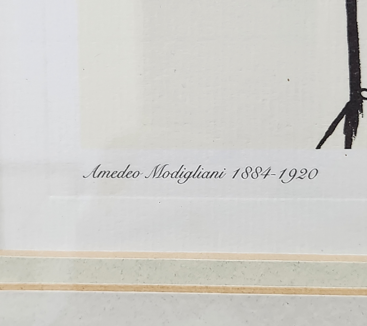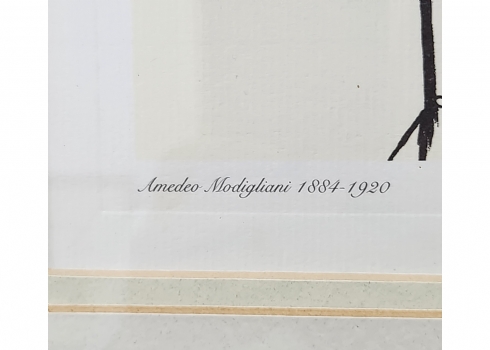 אמדאו מודיליאני (Amedeo Modigliani) - ליטוגרפיה יפה, חתומה בפלטה ונושאת את שם היצירה, מידות: 25.5X19 ס"מ, מידות המסגרת: 46X36.5 ס"מ.