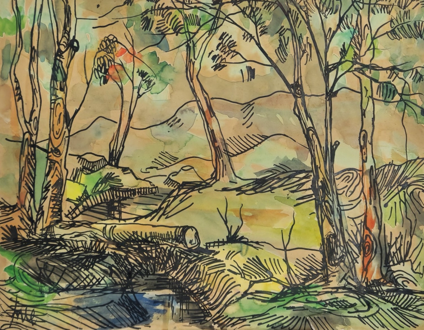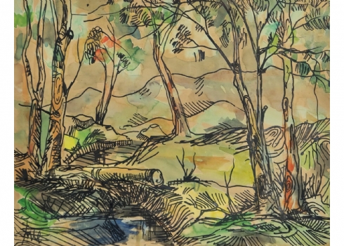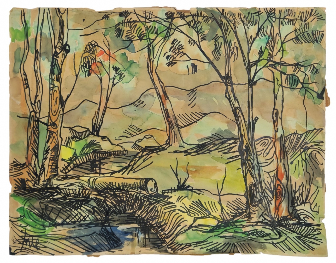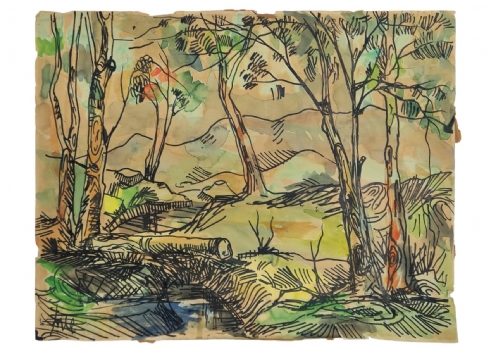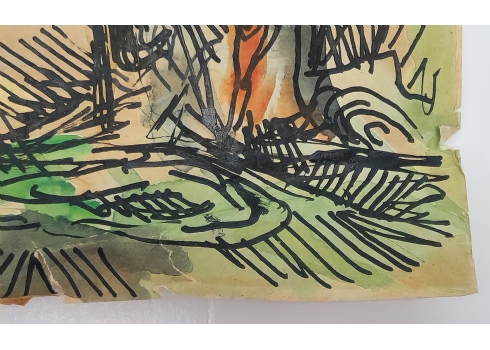 יוסי שטרן (Joseph Stern) - אקוורל וטוש על נייר, ללא מסגרת, מידות: 28X35.5 ס"מ, פגמים לנייר.