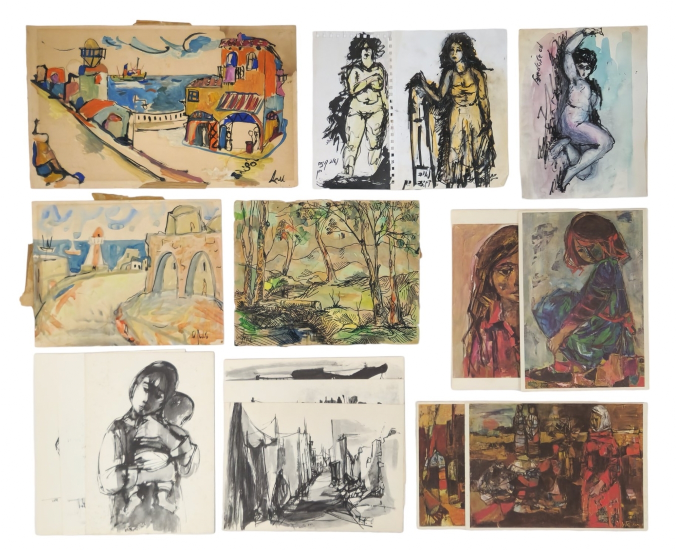 לוט של 16 ציורים וליטוגרפיות שונות