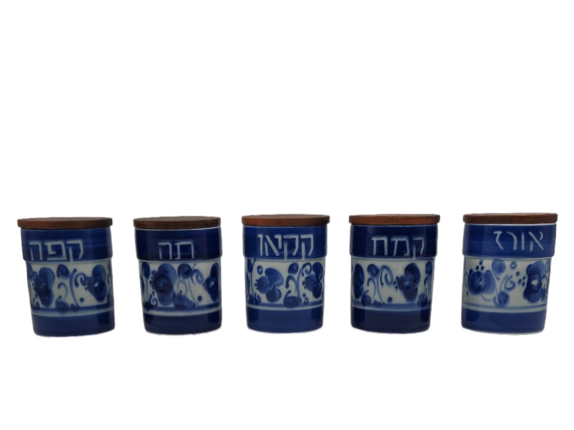 סט של 5 קופסאות גליליות לתבלינים ישראליות