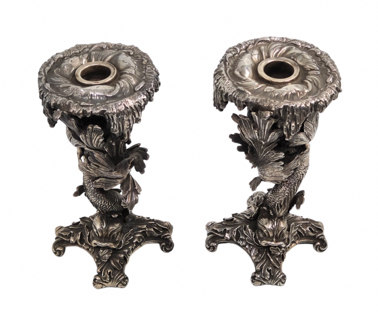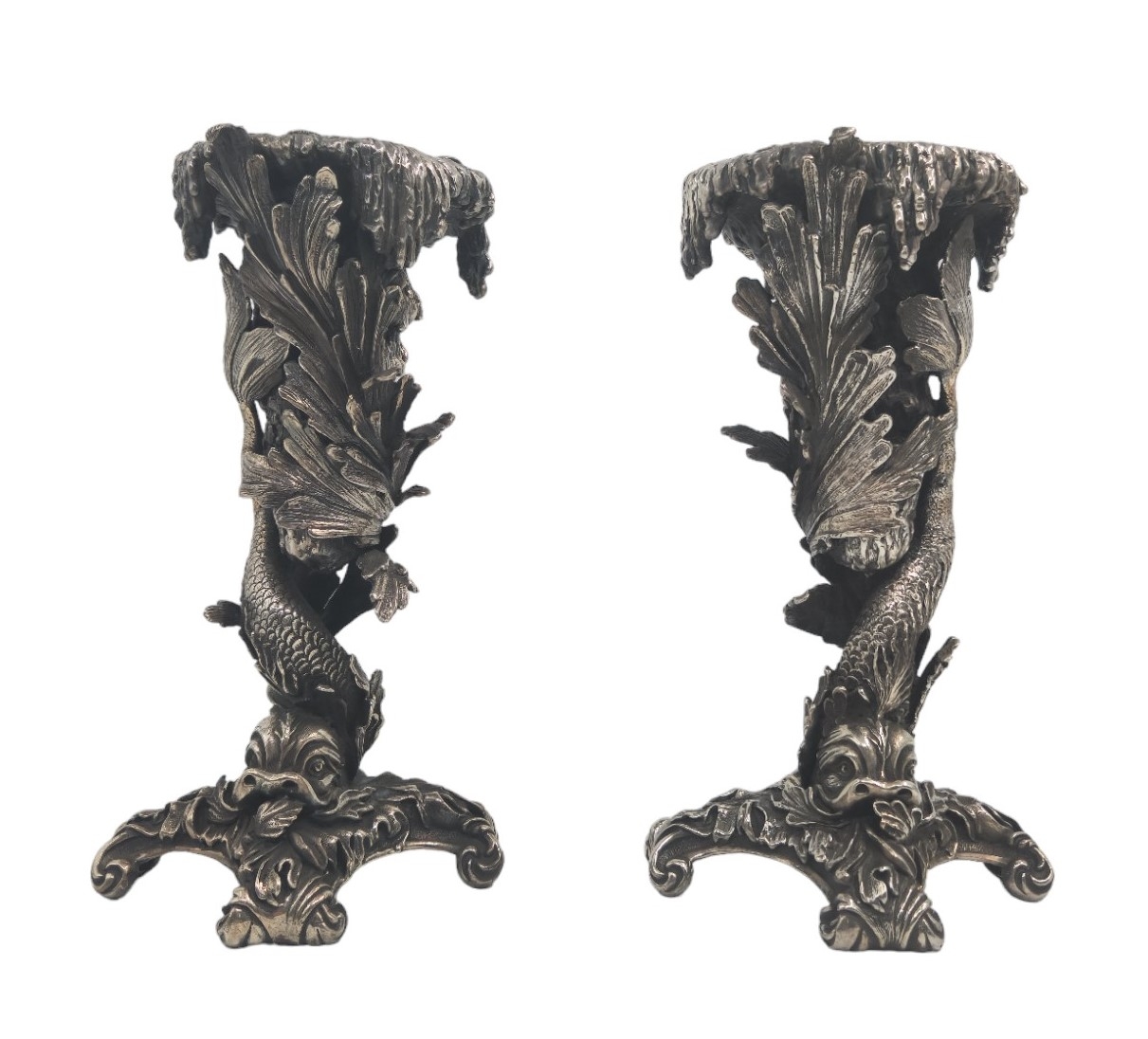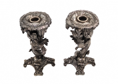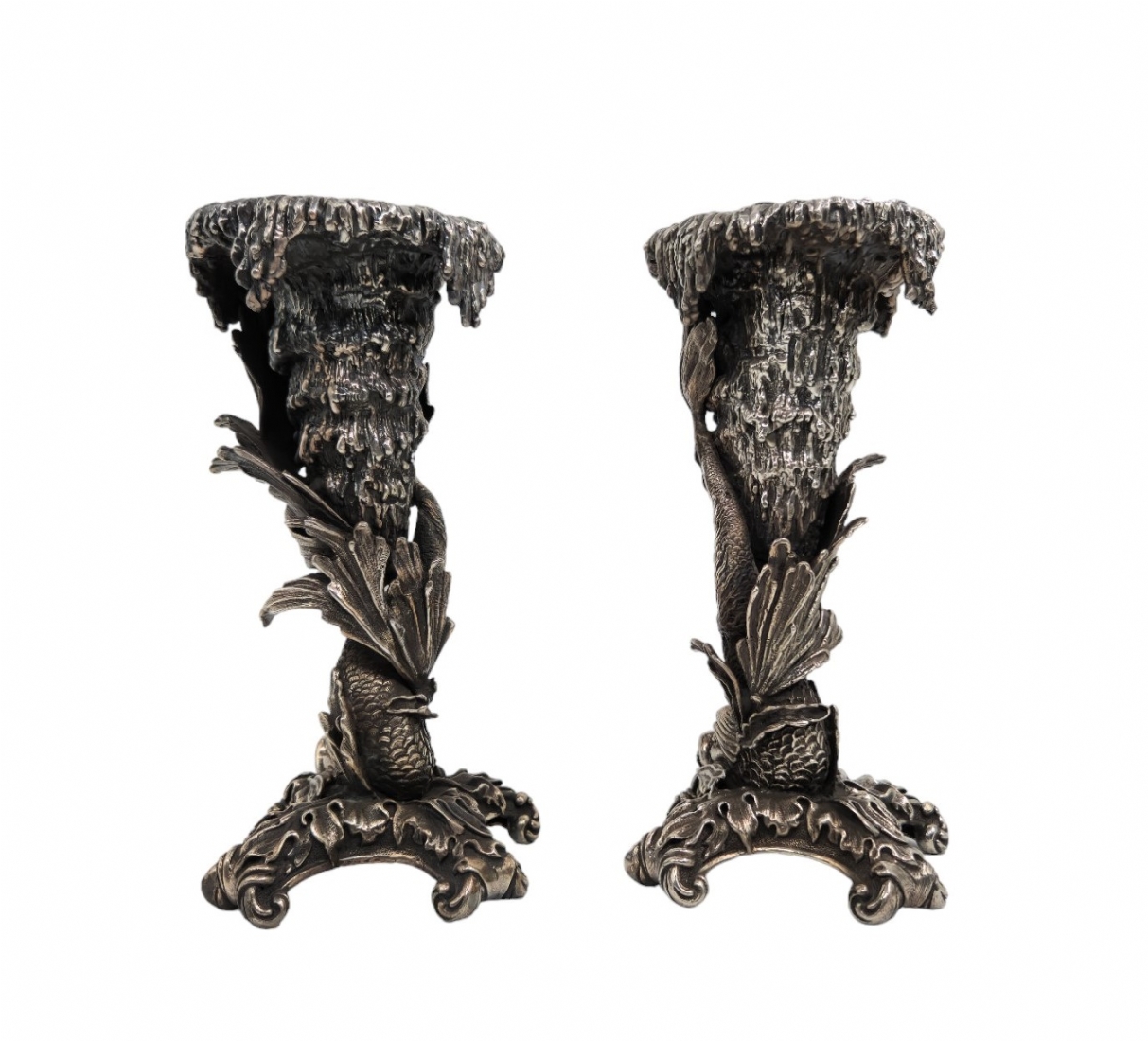 זוג פמוטי כסף בסגנון 'גרוטו' (Grotto), עשויים כסף בדגם דגים אצות ים ואלמוגים