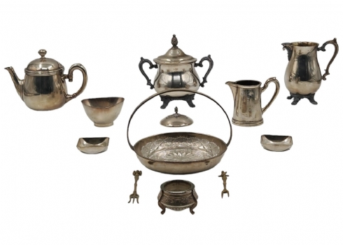 - קערת הגשה שטוחה עם ידית וקערית קריסטל (לא סט).