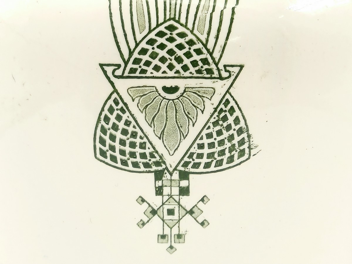 מעוטר בהדפס מועבר בירוק, חתום, משנת 1920 בקירוב