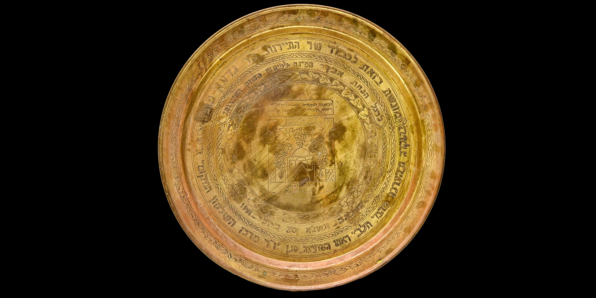 מגש נחושת מעוטר. קוטר: 48 ס"מ.