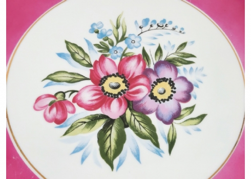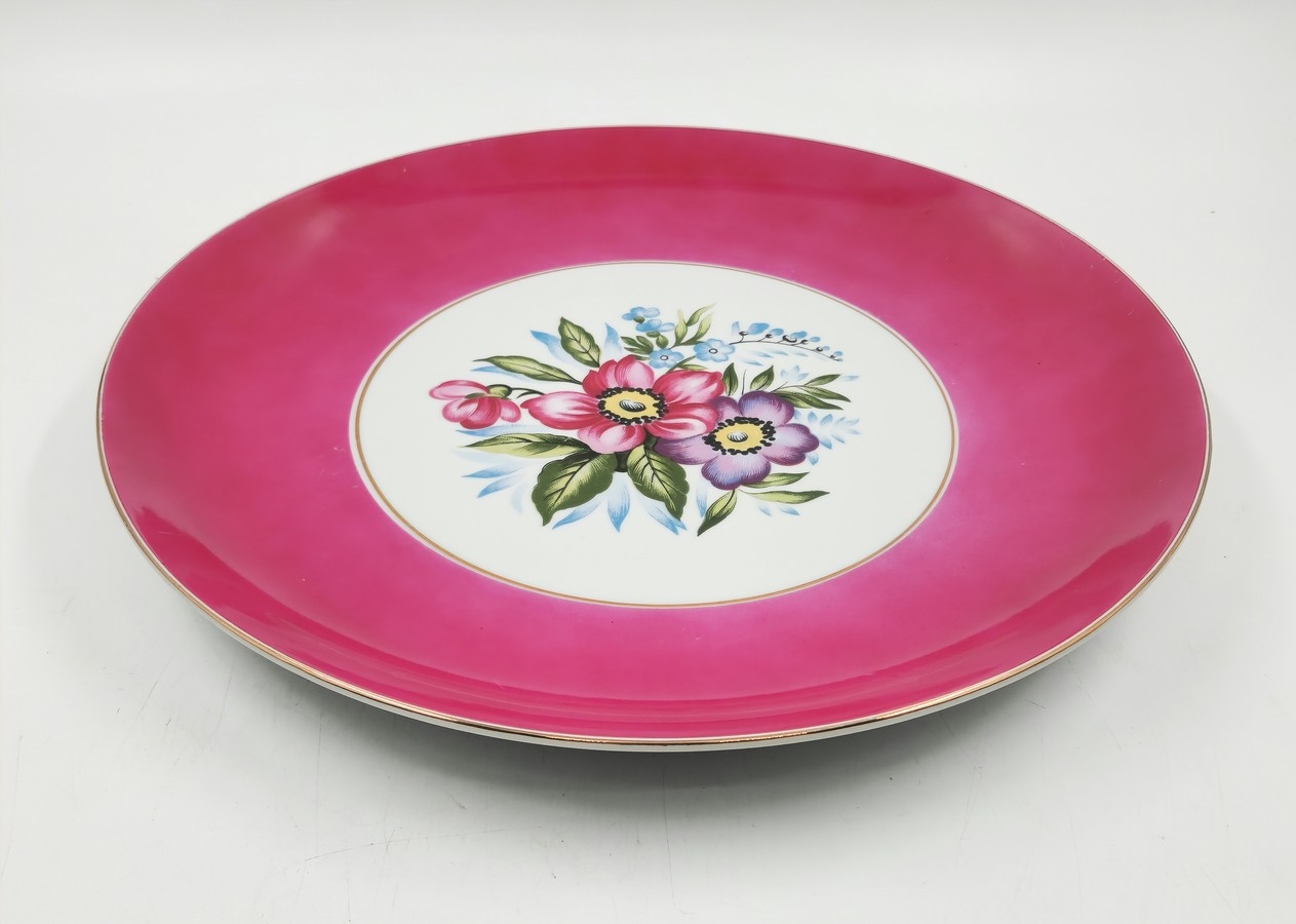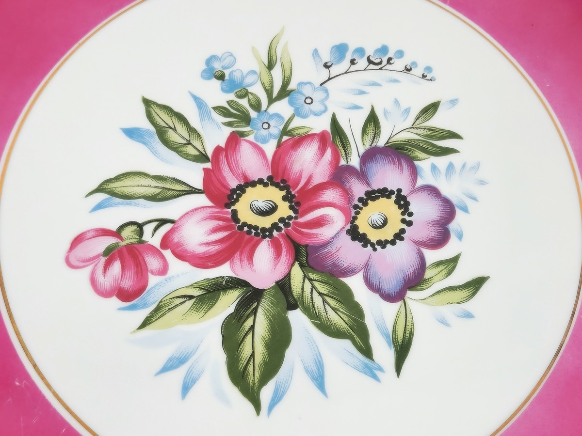 כלי פורצלן יפני גדול בסגנון בוכרי, מעוטר בהדפס פרחוני וחתום