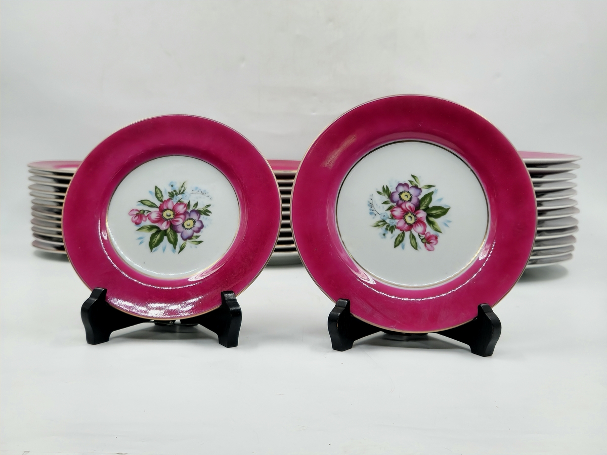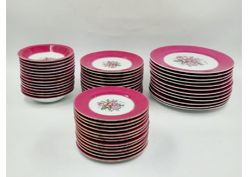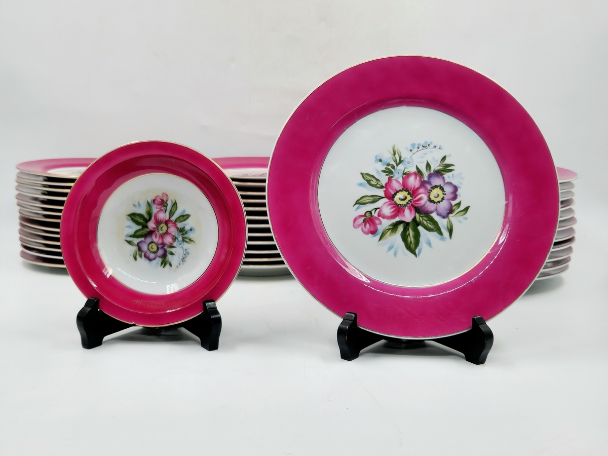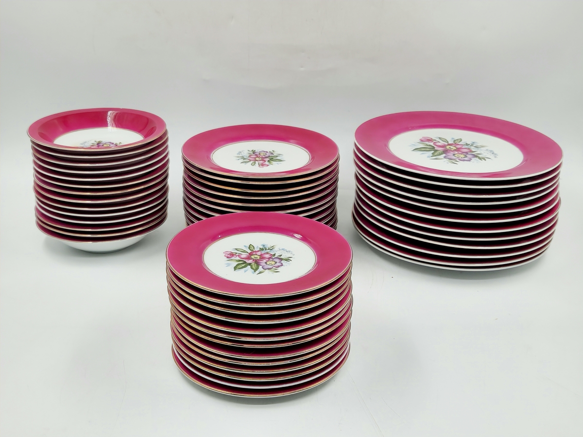 סט של 51 צלחות פורצלן יפניות בסגנון בוכרי מעוטרות בהדפסים פרחוניים