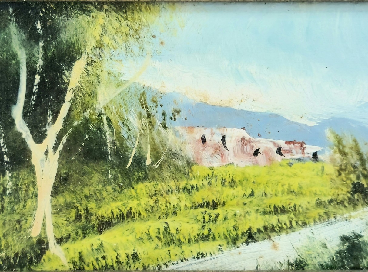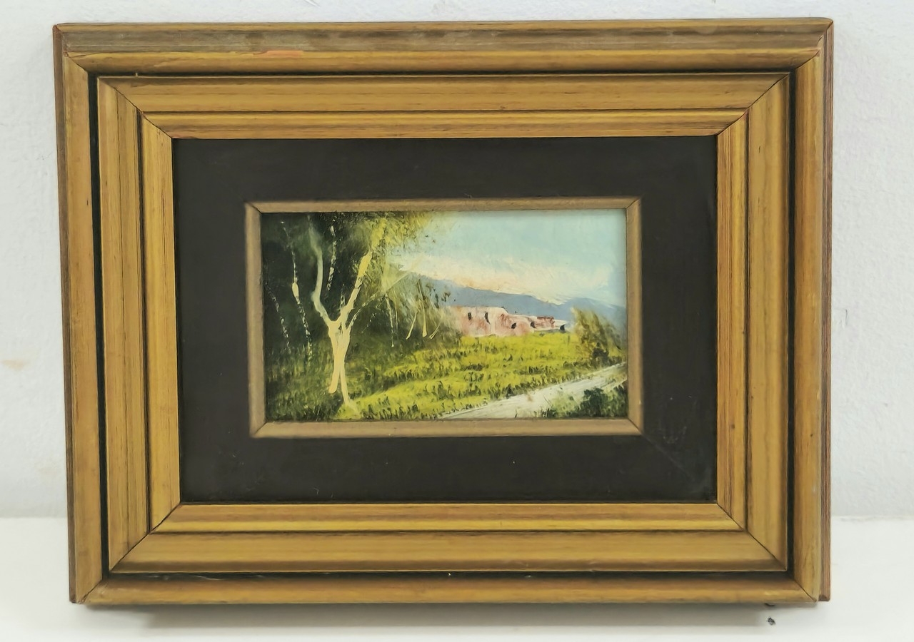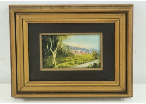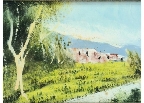 'נוף' - ציור קטן, שמן על לוח מזוניט, לא חתום