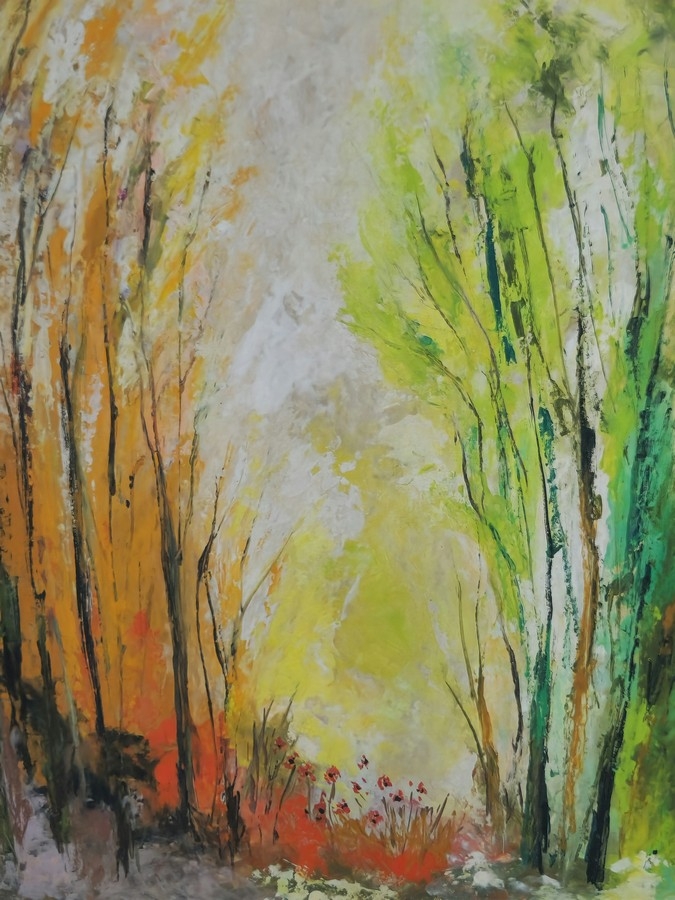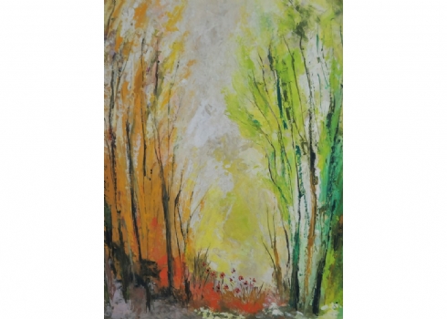 א. אורן, 'כלניות בחורשה' - שמן על לוח, חתום בפינה השמאלית התחתונה