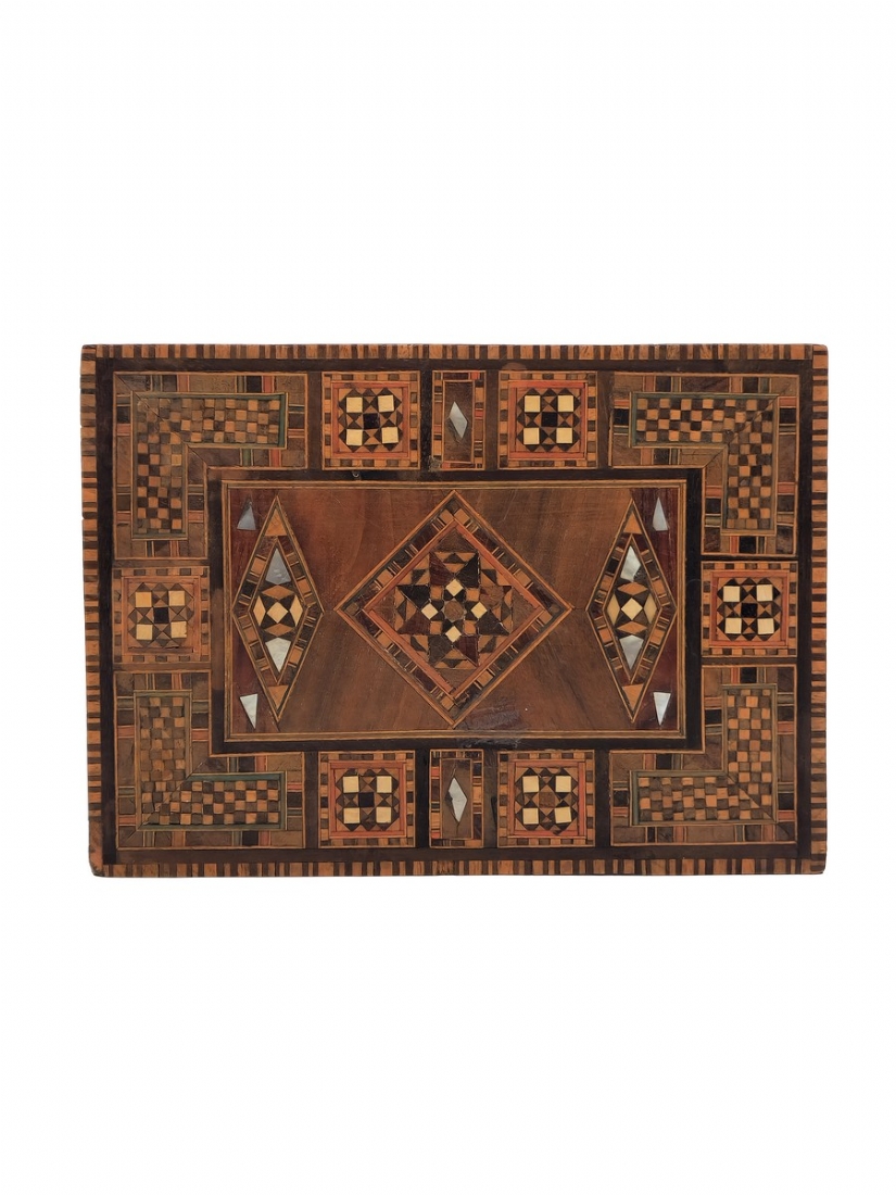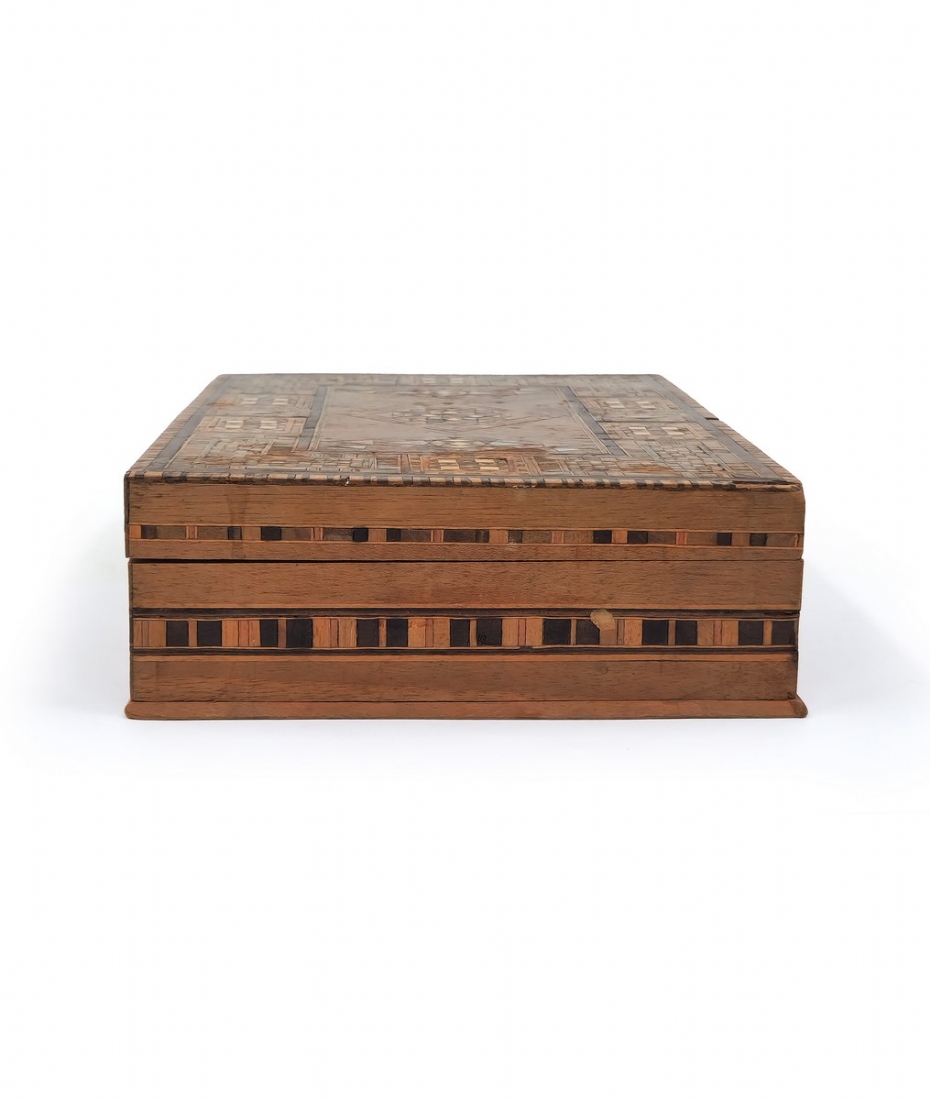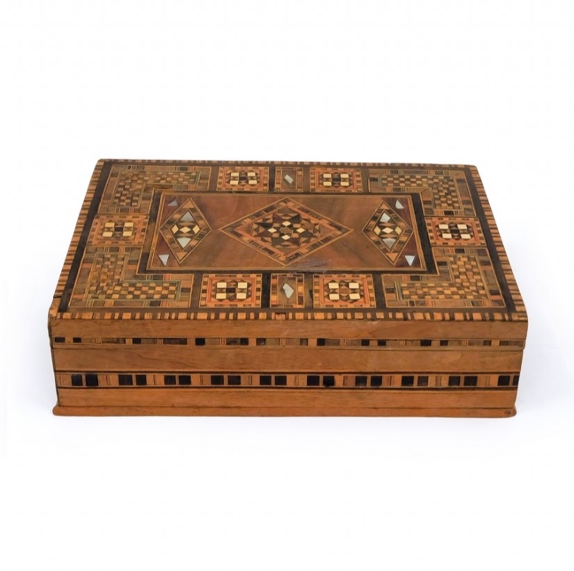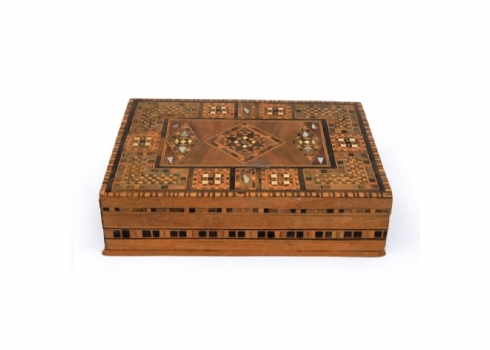 תיבת עץ סורית, מעוטרת בשיבוץ מסוג 'קאטם קארי' (Khatam Kari)