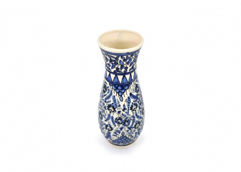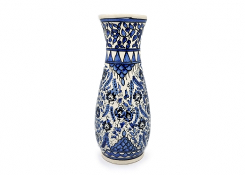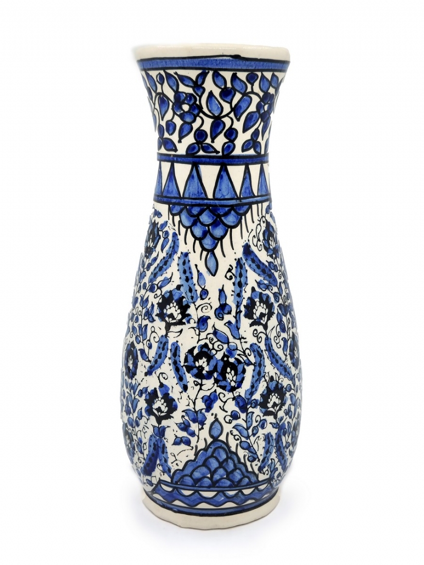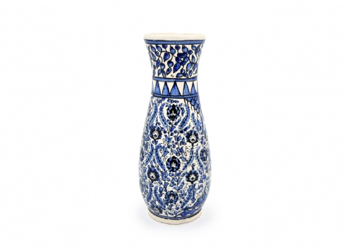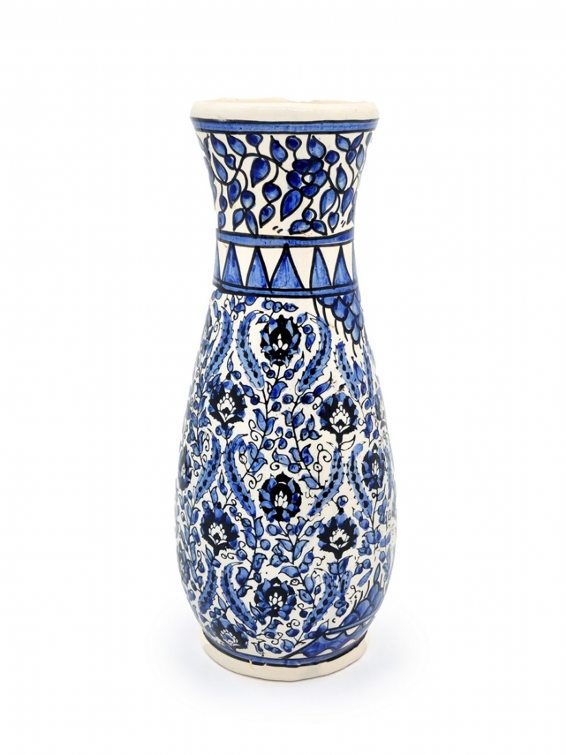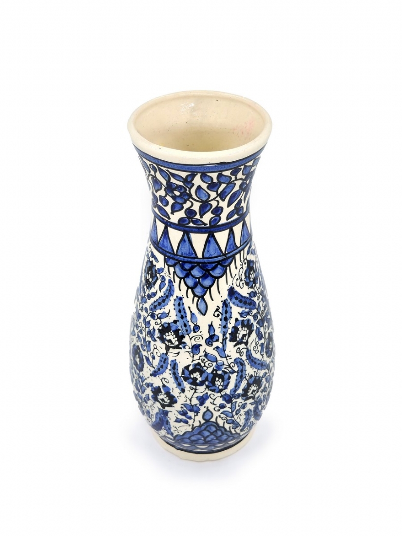 אגרטל קרמיקה ארמני, מעוטר ציורי יד בכחול על לבן, לא חתום