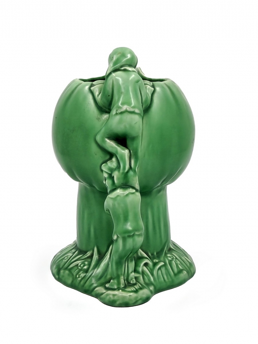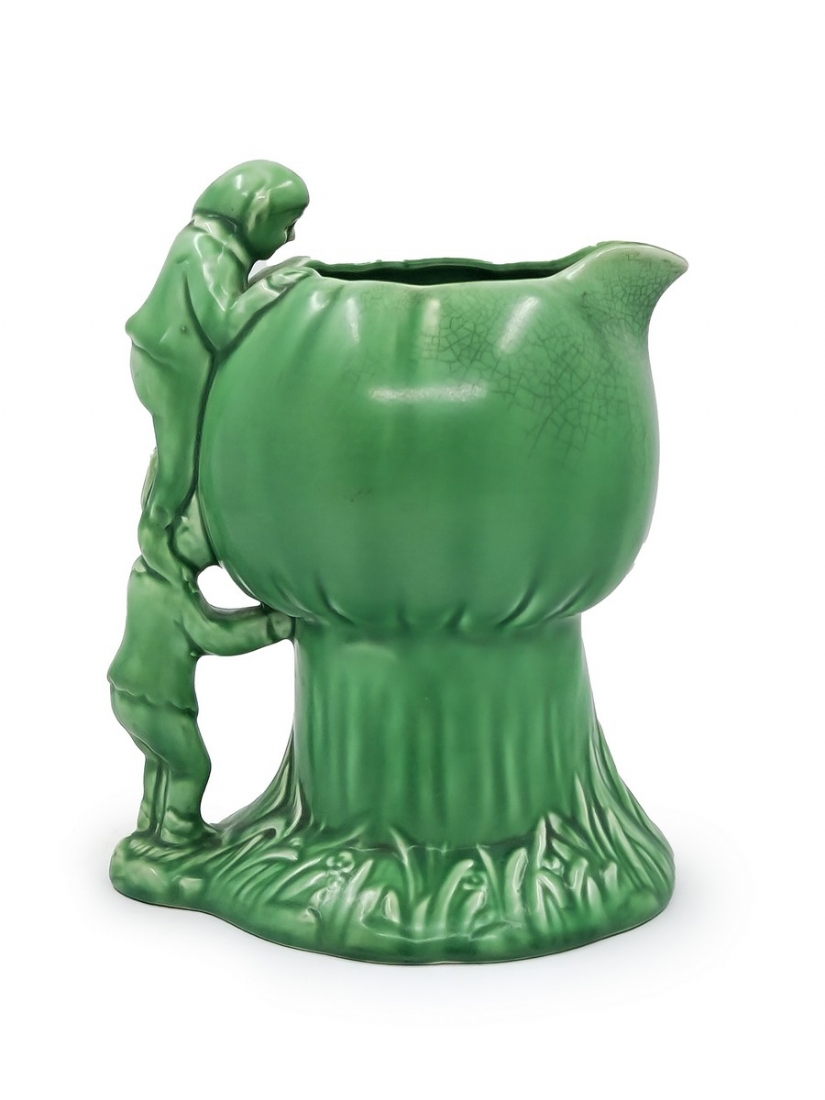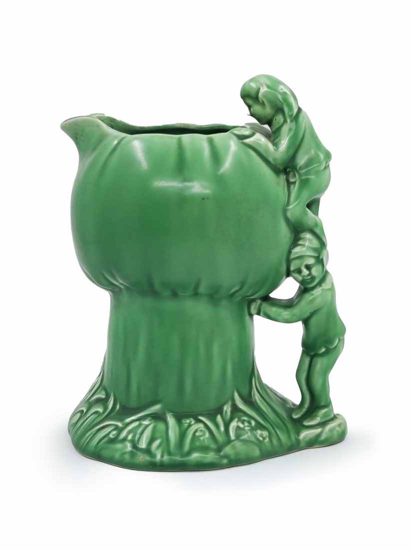 קנקן אנגלי מתוצרת: 'Sylvac' מעוצב בצורת שני גמדים מטפסים על פטריה, חתום