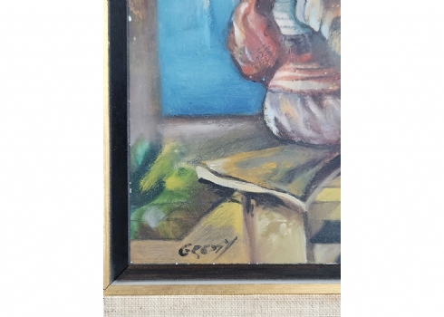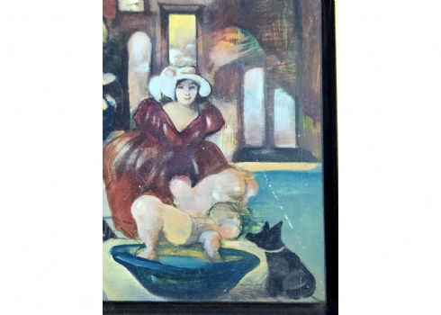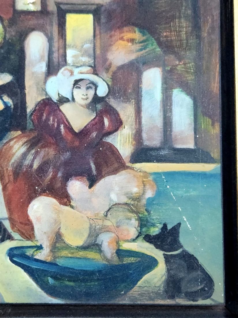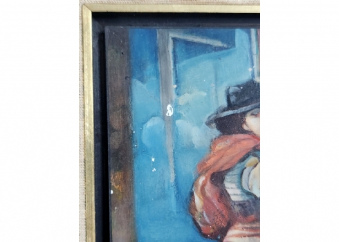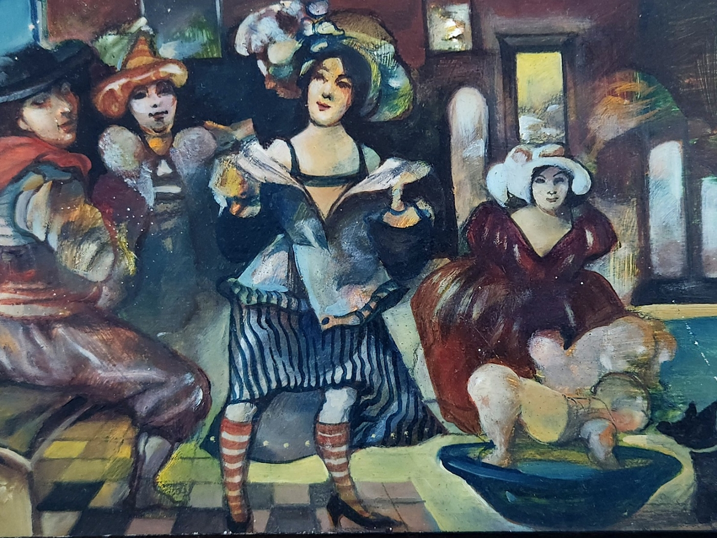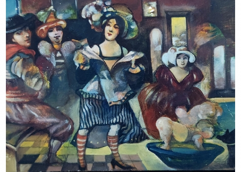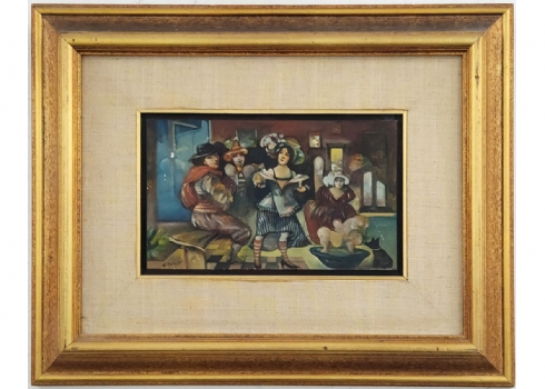 גרטי רובינשטיין רוטמן (Gerti Rubinstein) - 'בבית המרזח' - ציור שמן על לוח
