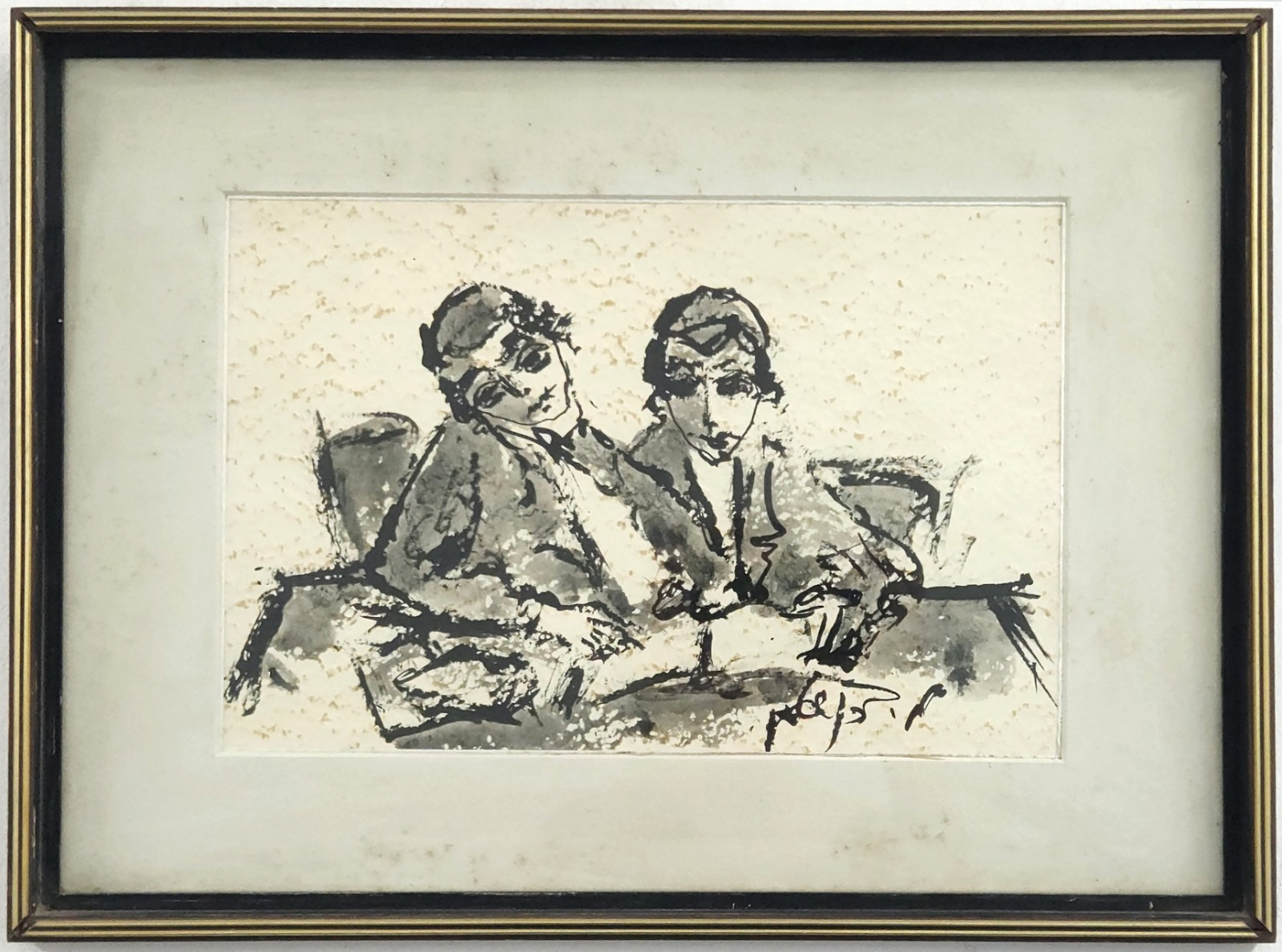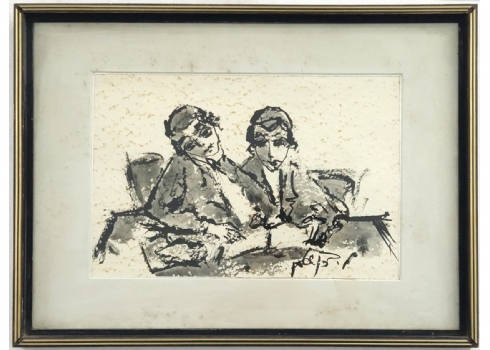 משה ברנשטיין (Moshe Bernstein) - 'שני תלמידים יהודים' - אקוורל על נייר, חתום