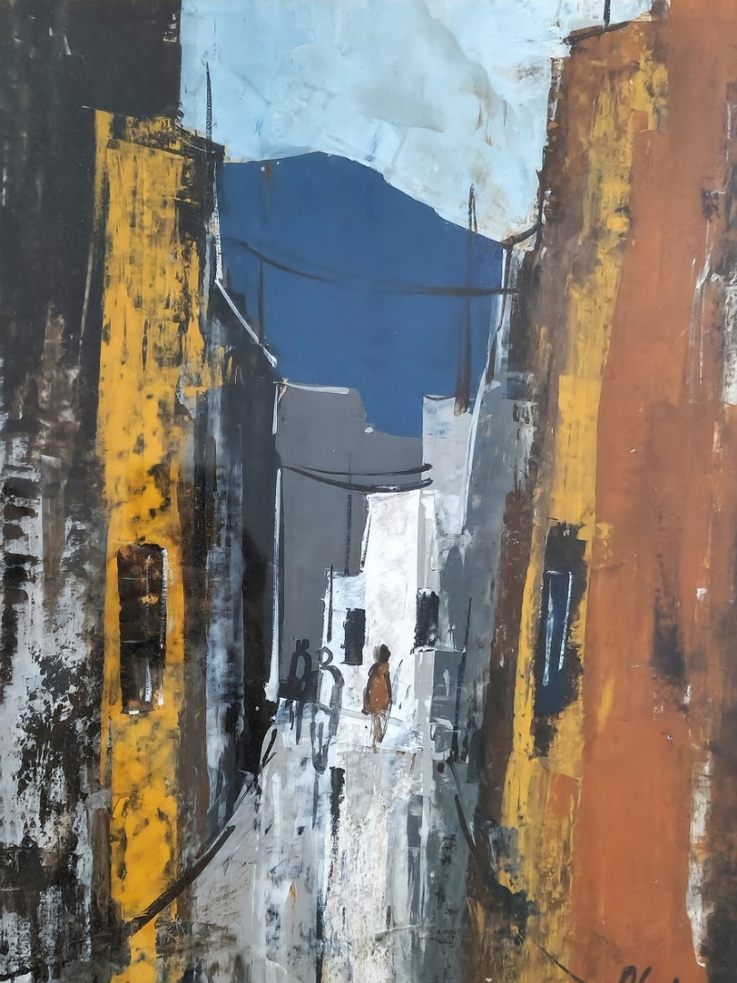 שאול אהלי (Shaul Ohaly) 'דמויות בסימטה', גואש על נייר