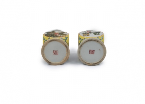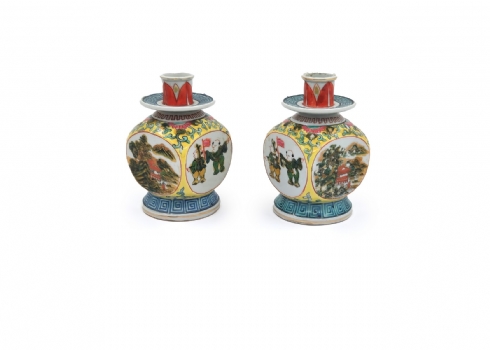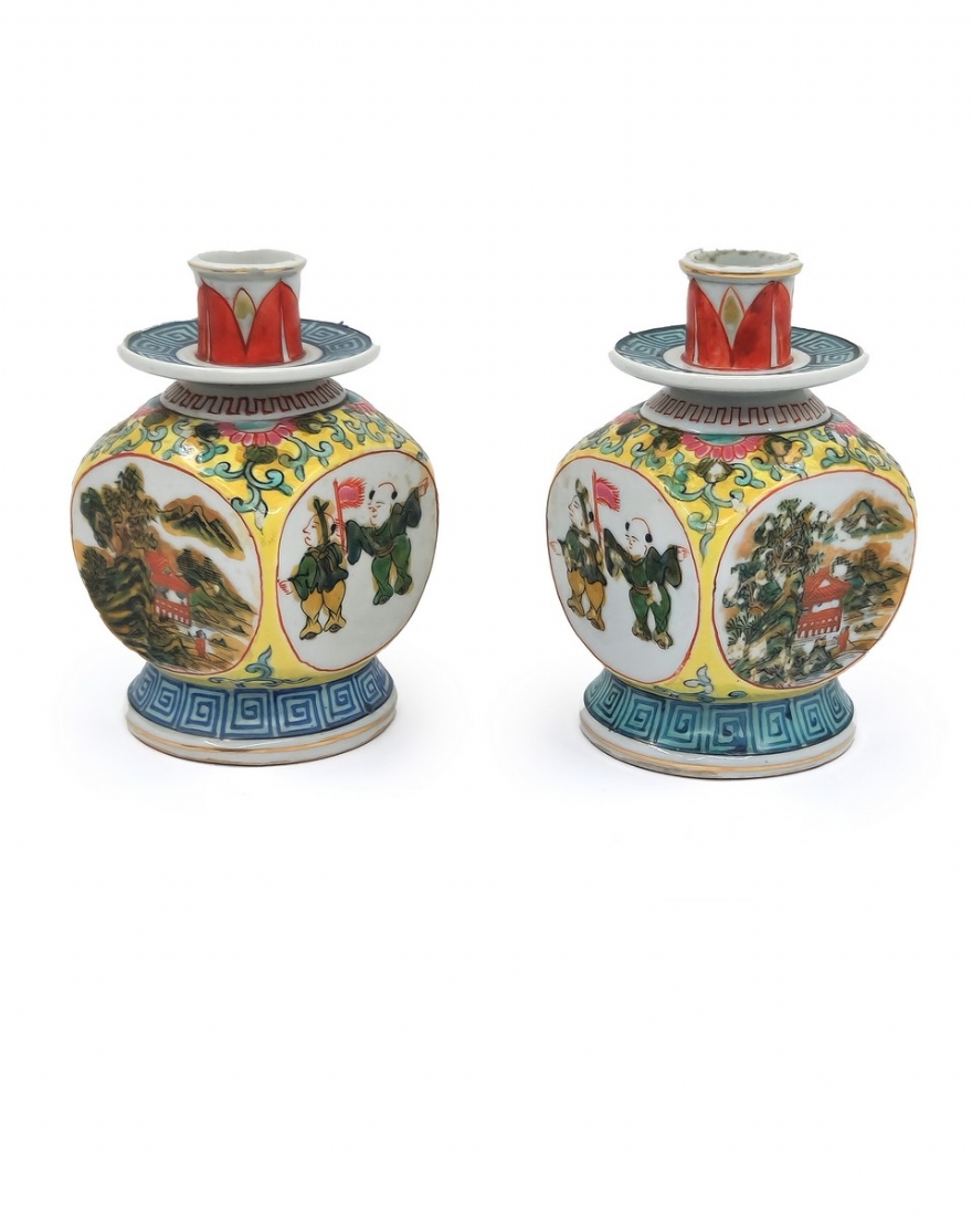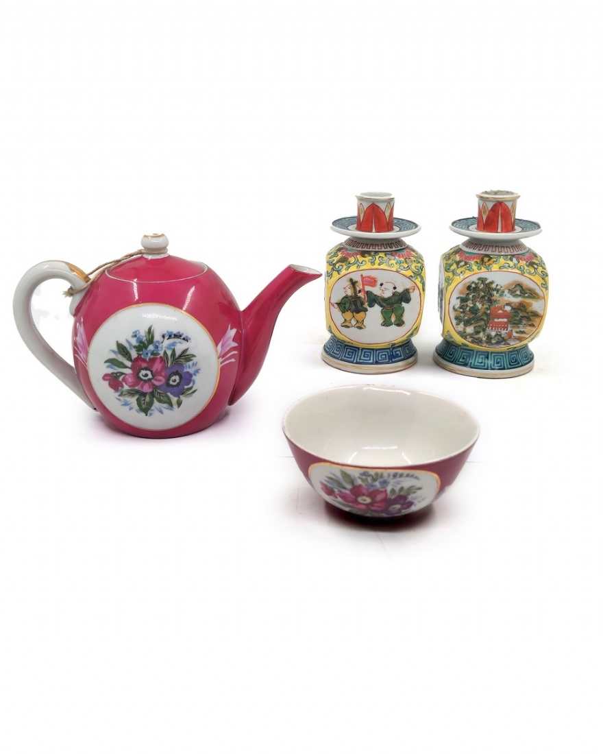 לוט של כלי פורצלן, הכולל זוג פמוטי פורצלן סיניים (משפחה צהובה), קומקום תה רוסי