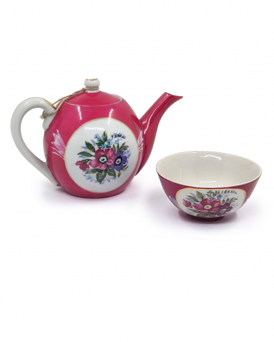 בסגנון בוכרי, וקערית תה (חתומה על ידי המפעל הרוסי: Dmitrovsky porcelain factory Verbilki)