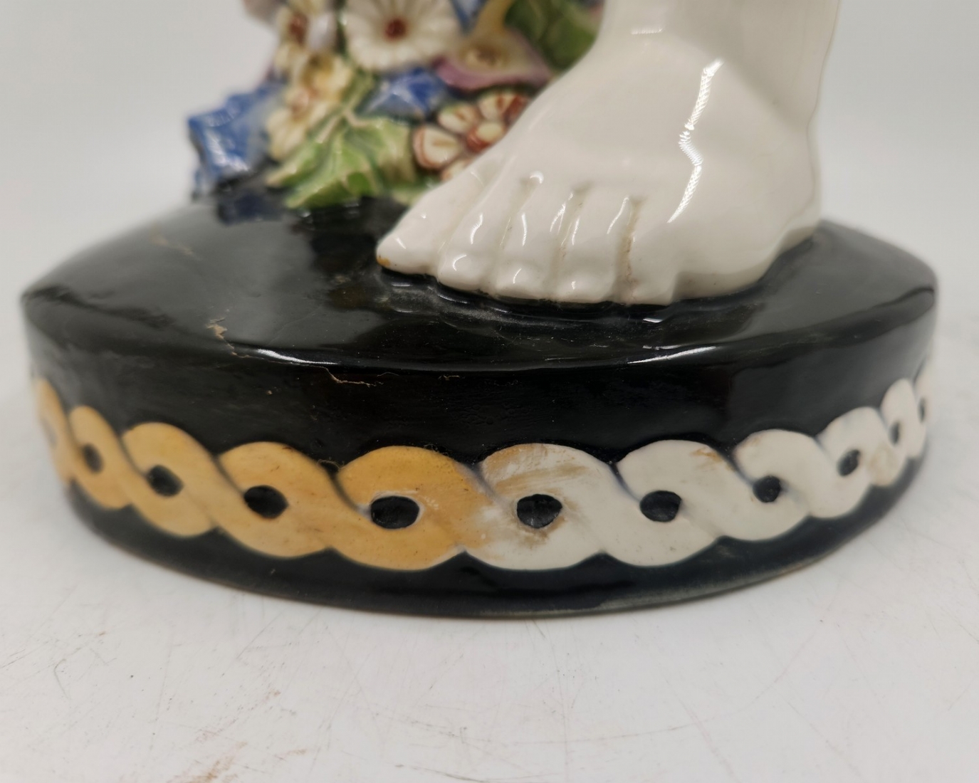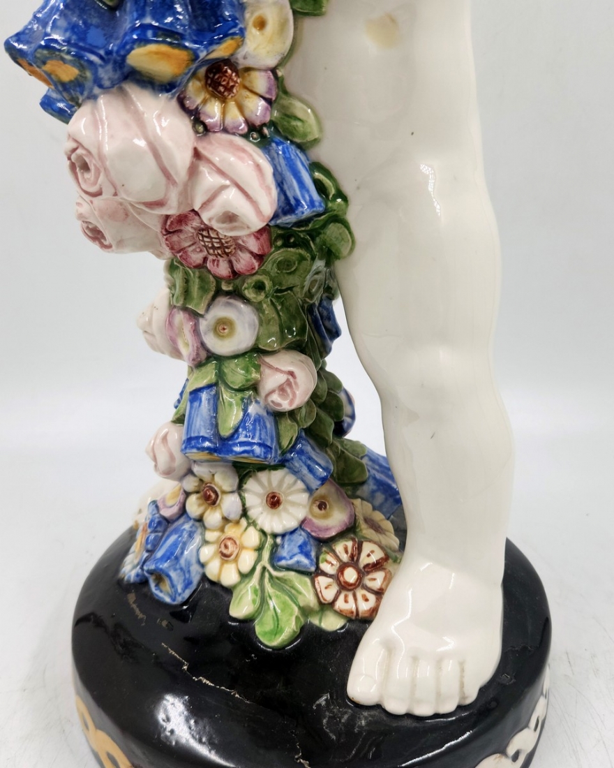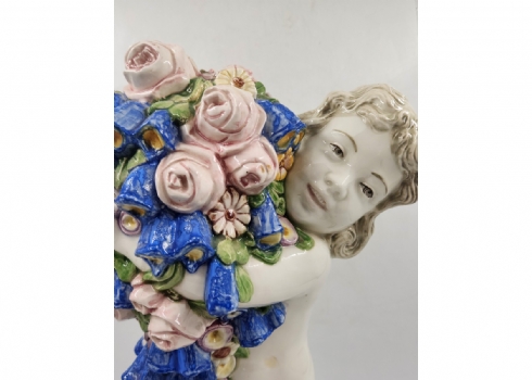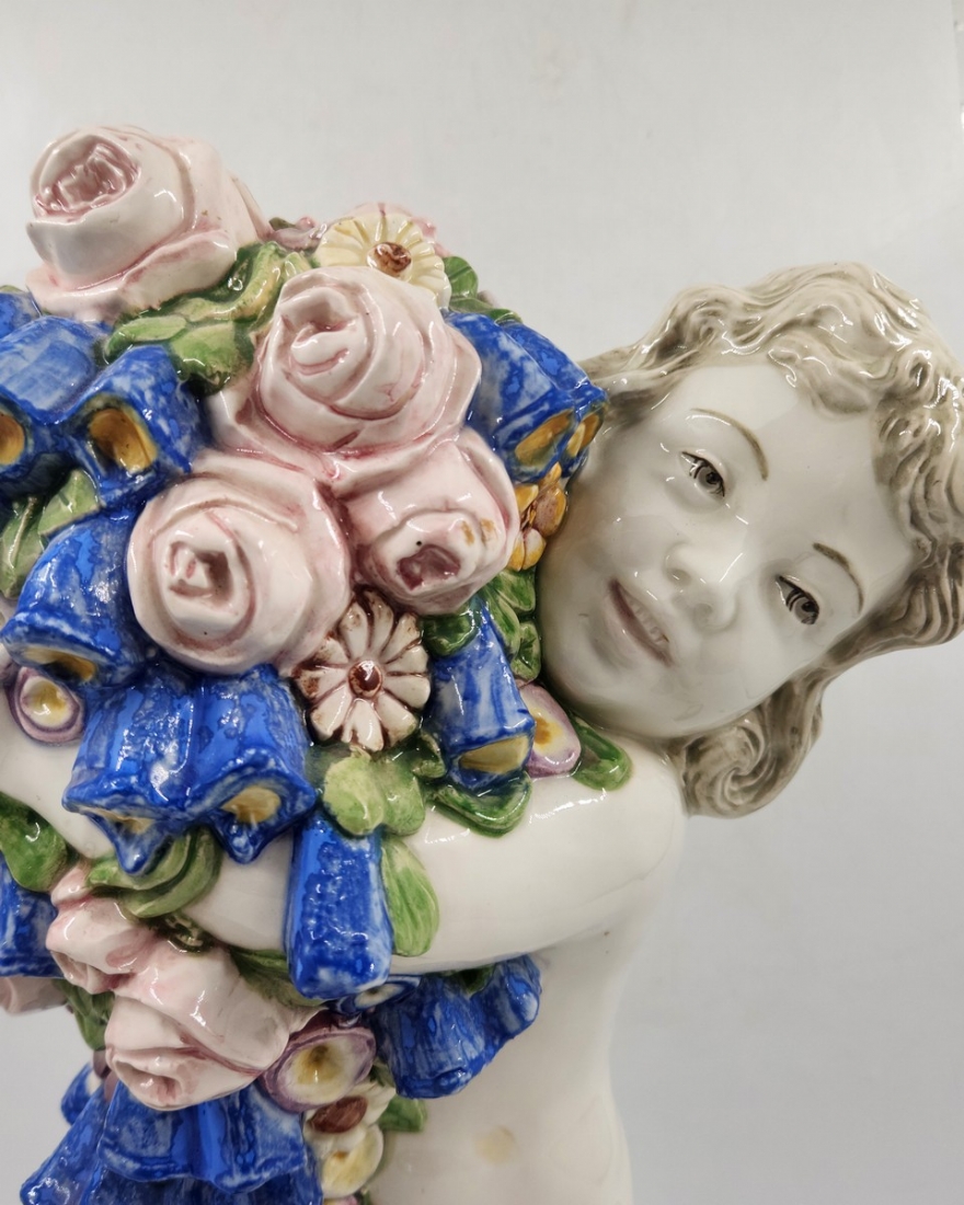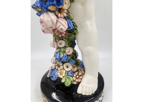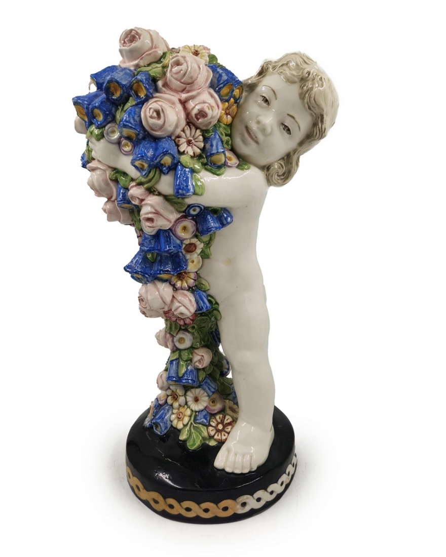 קארל קלימט (קרמיקאי, Carl Klimt) - פסל חרסינה בדמות פוטי אוחז תפרחת, לא חתום