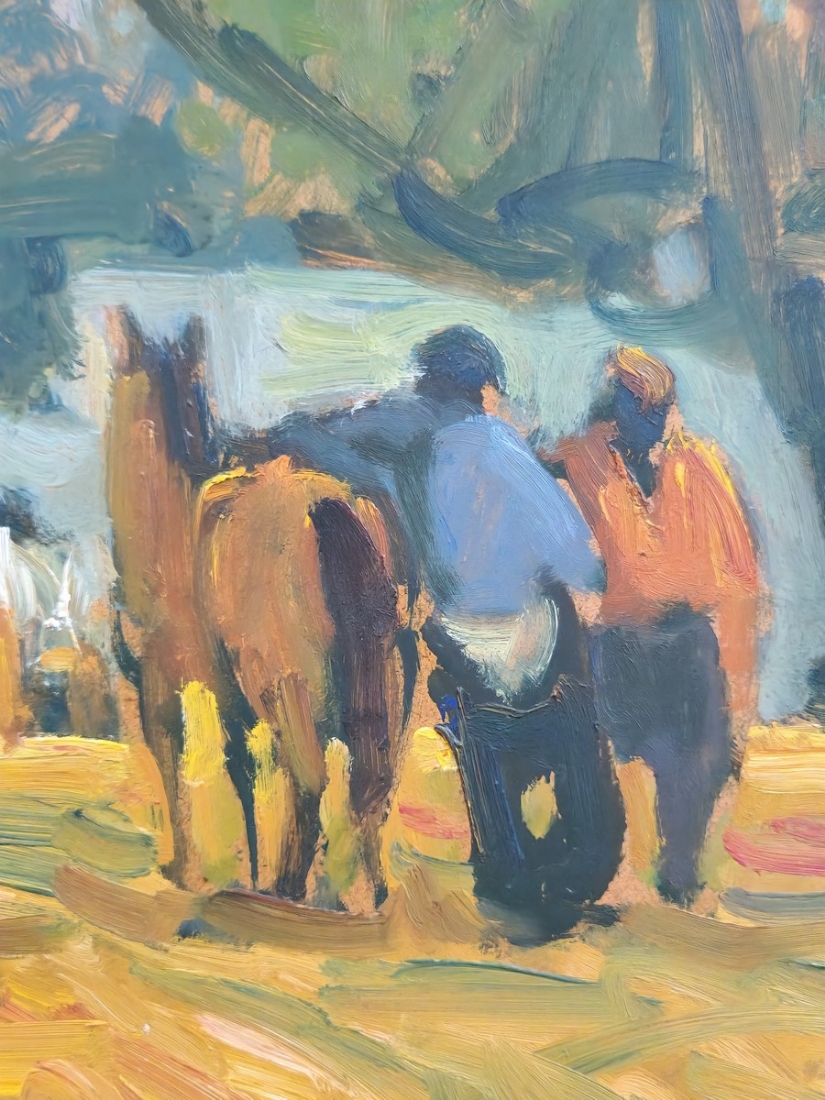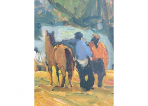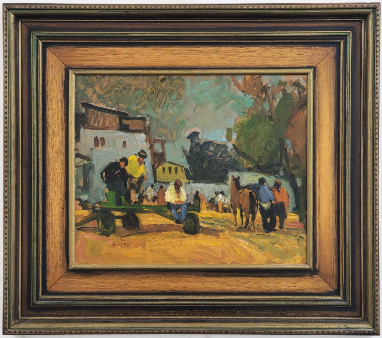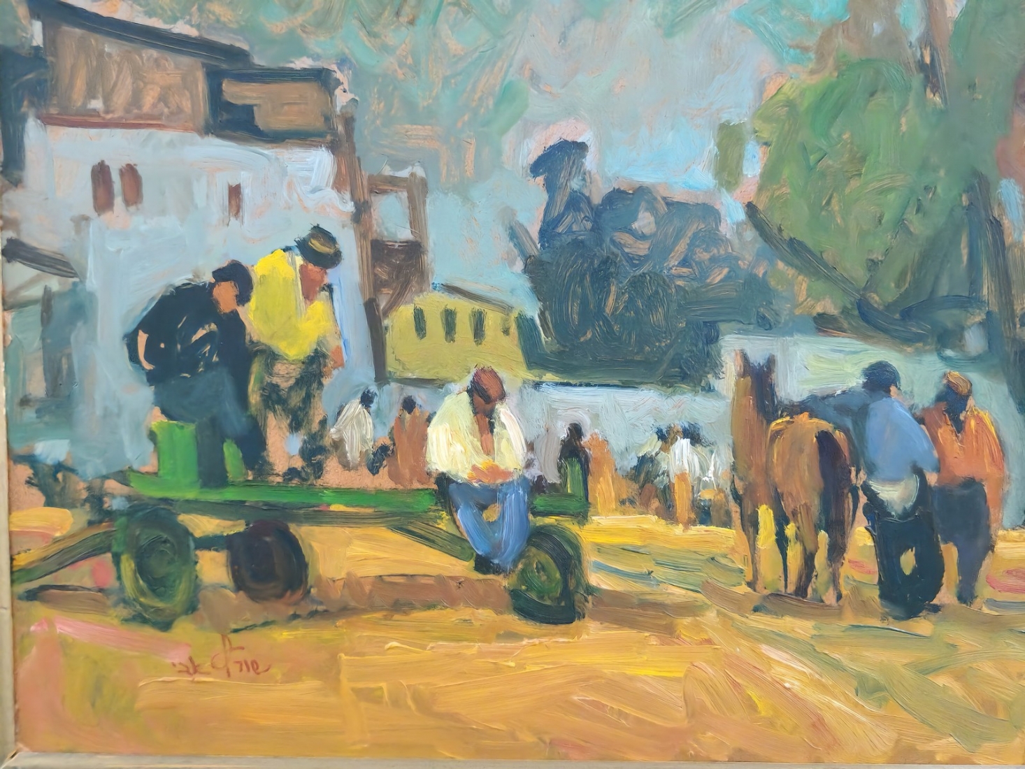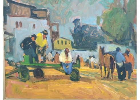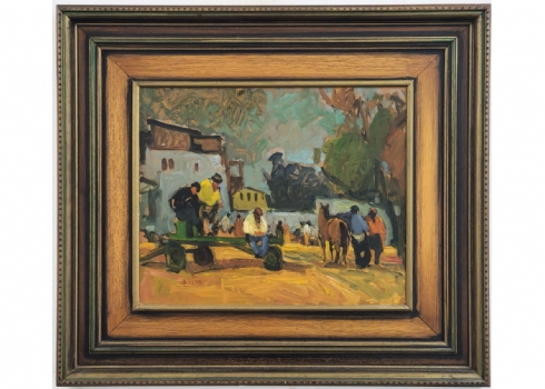אבי שוורץ (Avi Schwartz) - 'עגלונים ביפו' - ציור גדול ויפה, שמן על לוח, חתום
