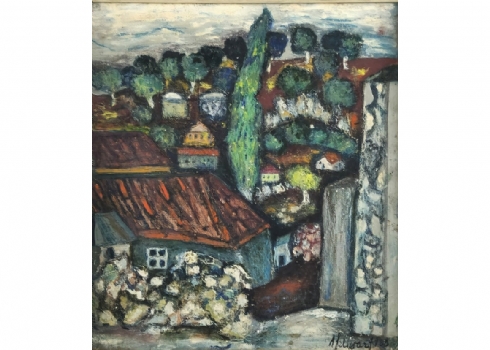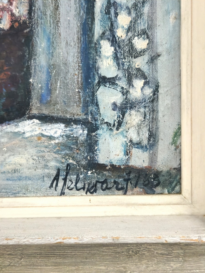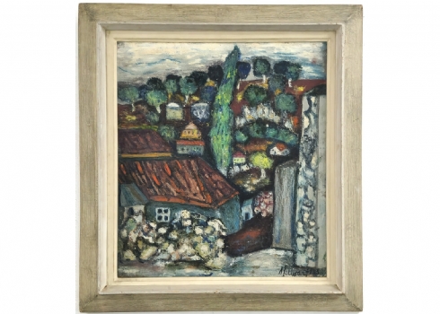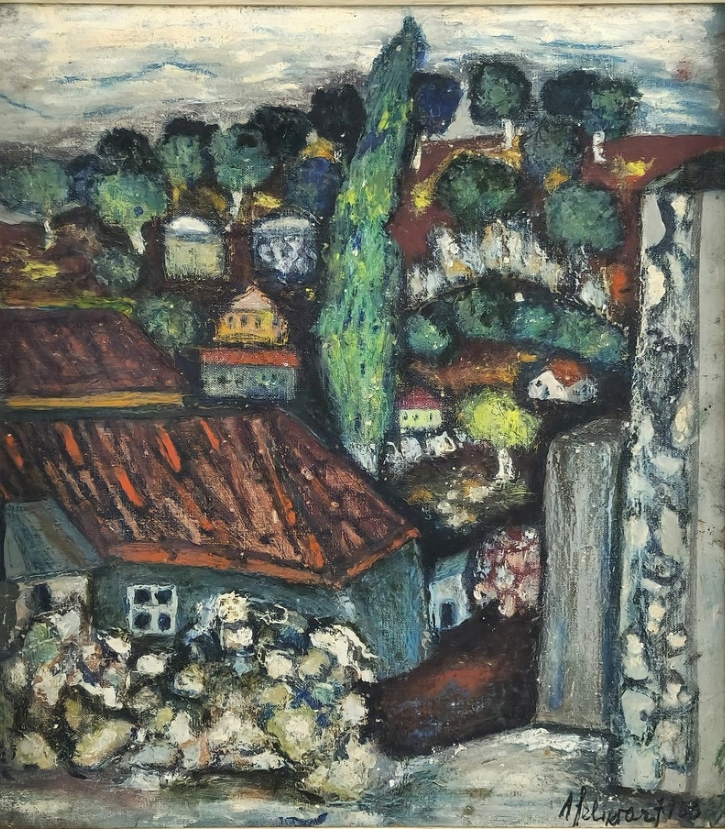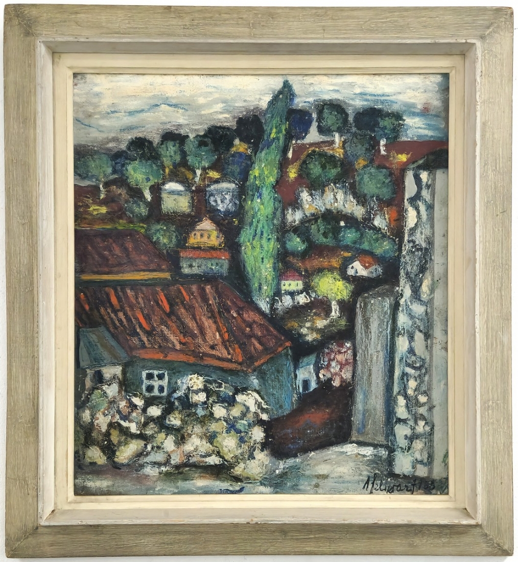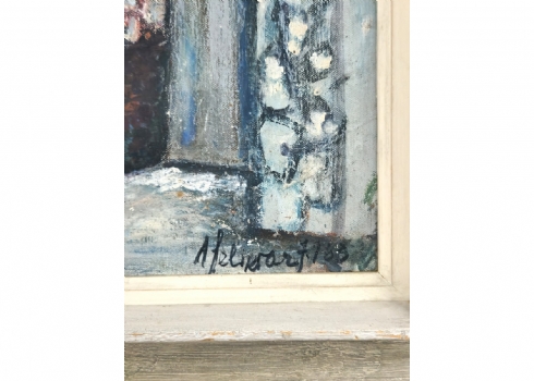 סליקטר, אנגלה (Angela Seliktar) 'ראש פינה' - ציור שמן על לוח, חתום ומתוארך: 1968