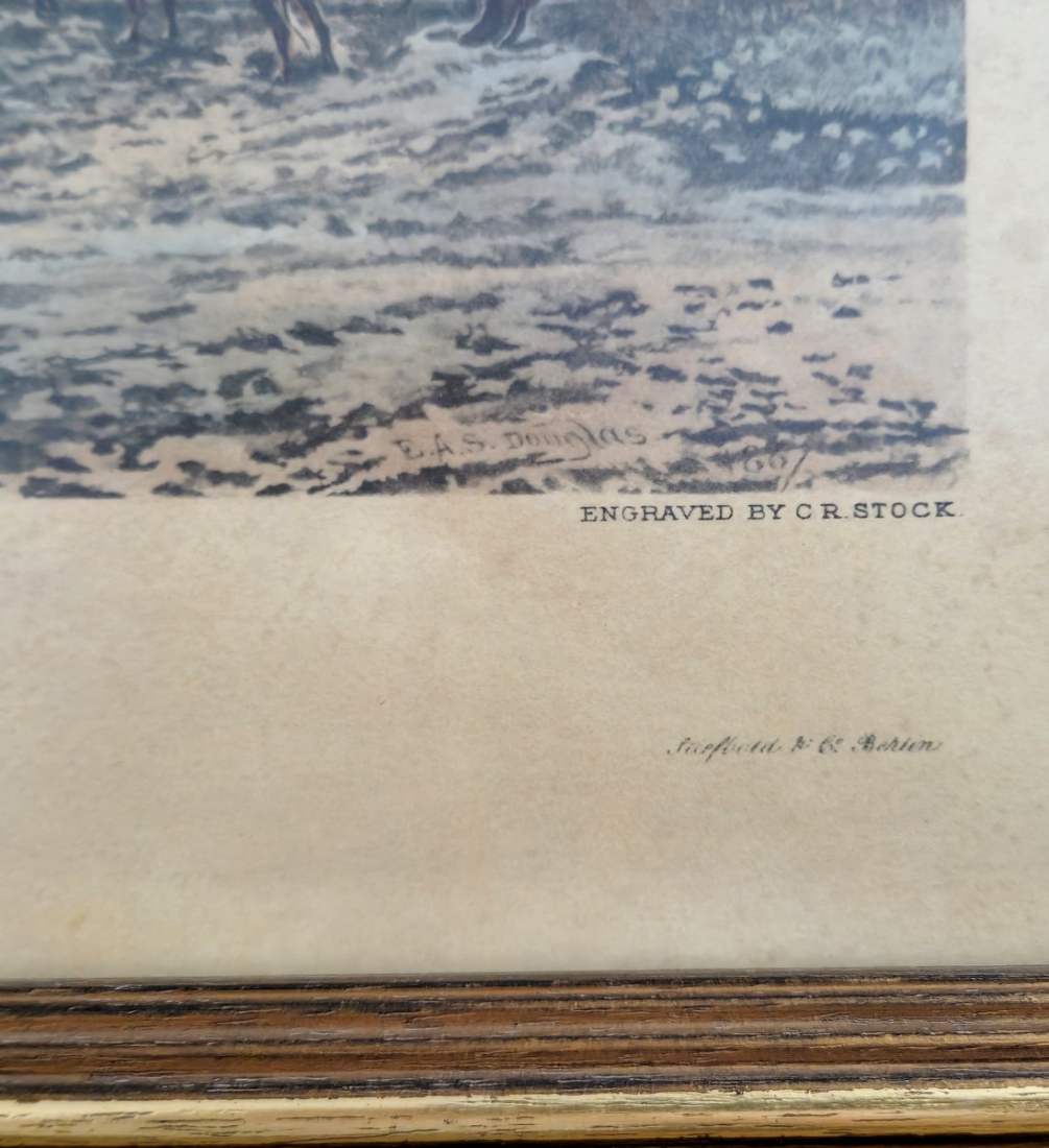 הנקרא: 'Off To The Meets' משנת 1920 בקירובמידות: 32X75 ס"ממידות המסגרת: 43X85 ס"מ