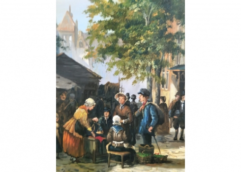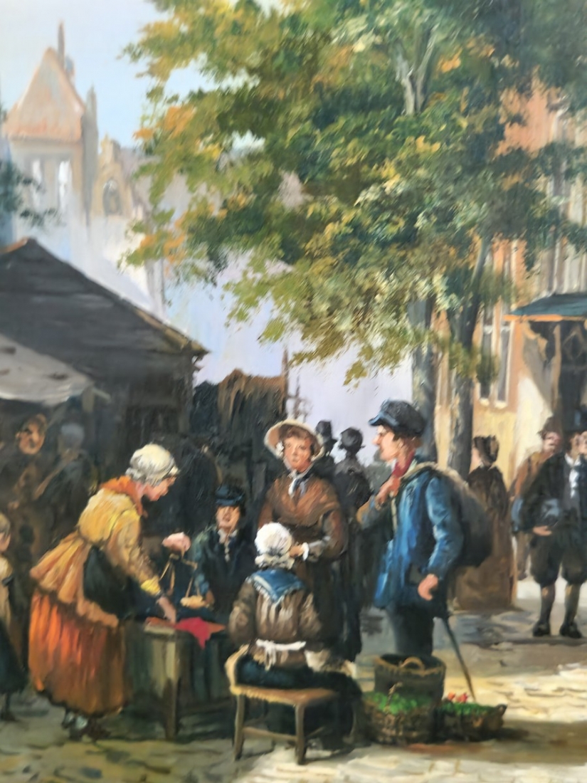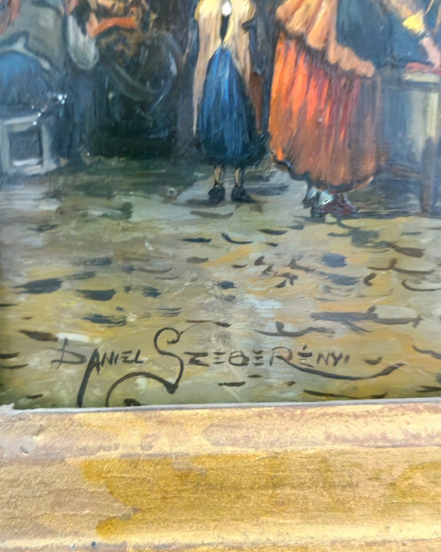ציור שמן על לוח, חתום,