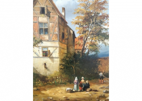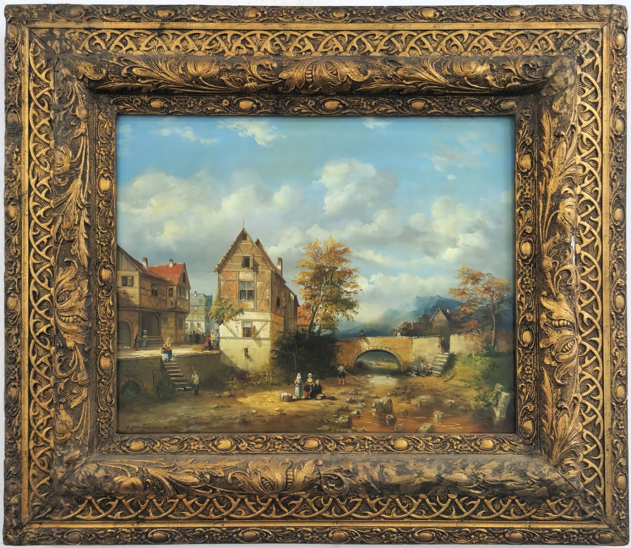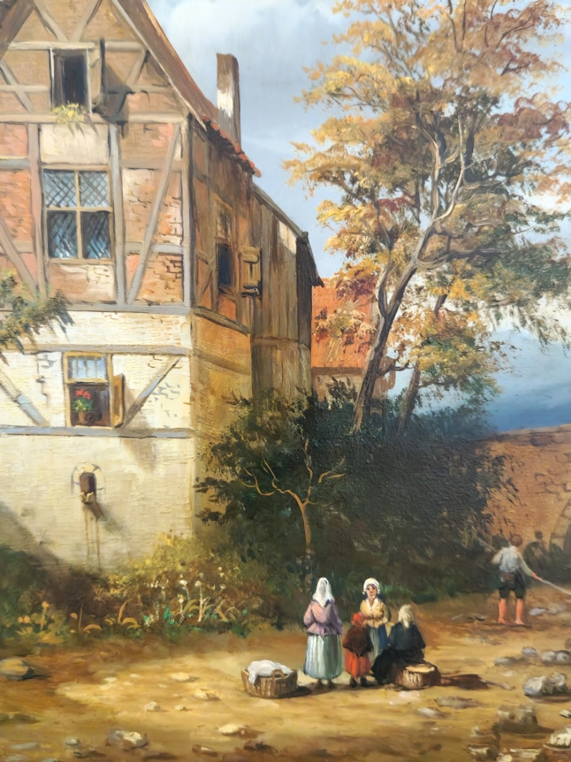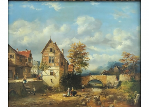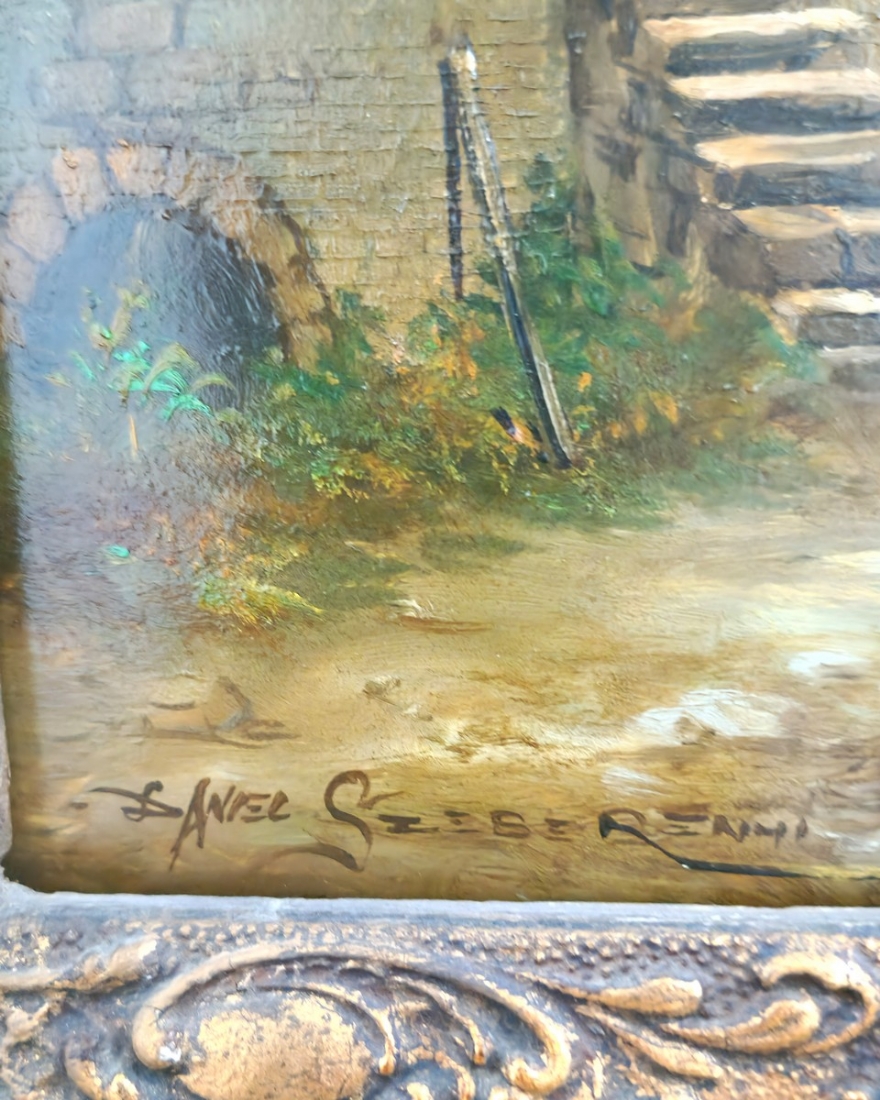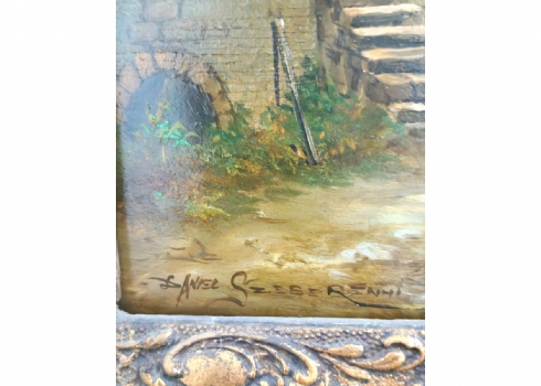 ציור שמן על לוח, חתום,