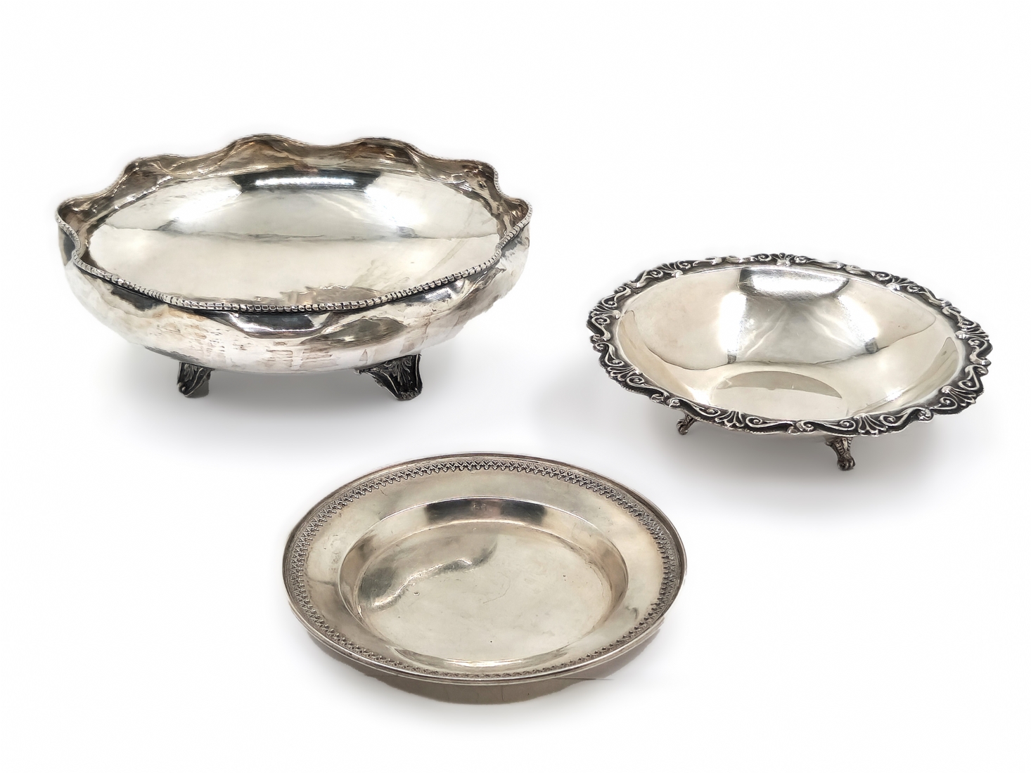 שלושה כלי כסף שונים, יצרנים ודגמים שונים, שלושתם חתומים