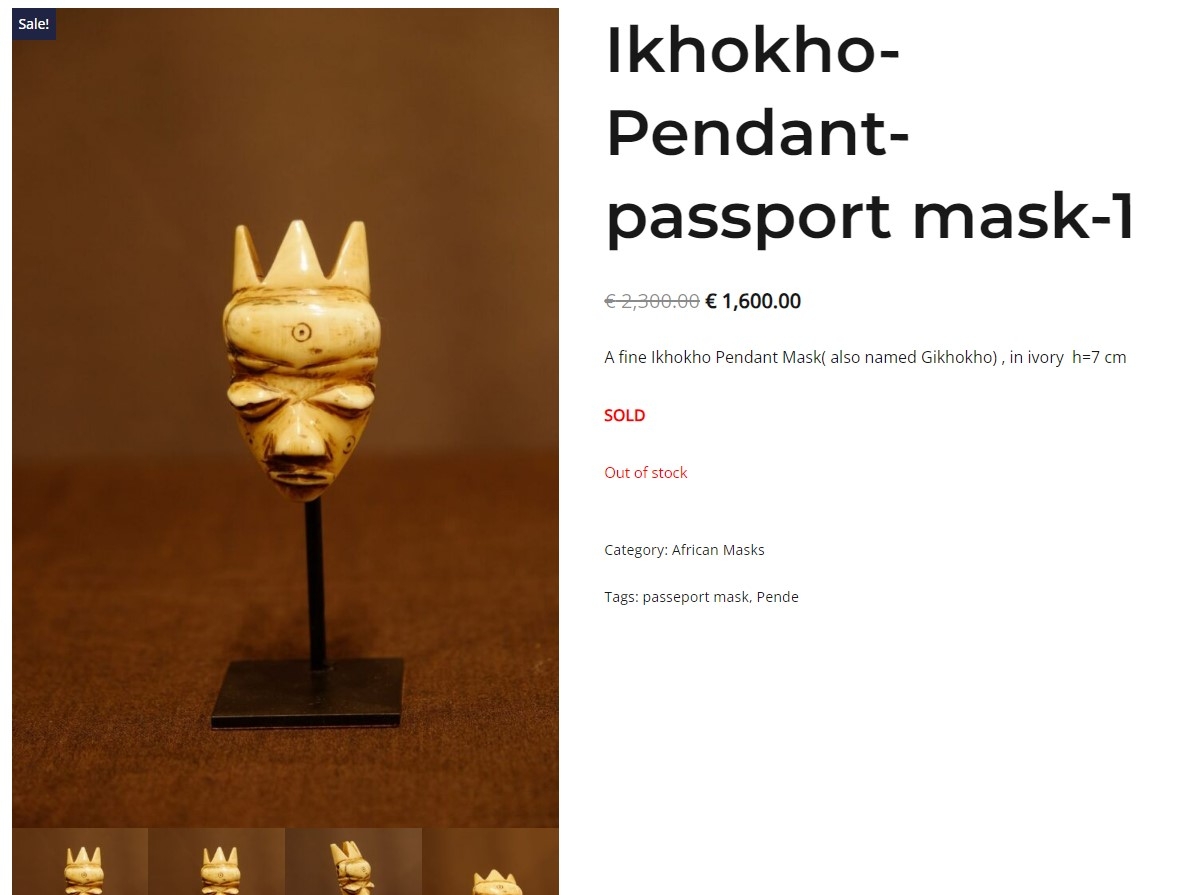 תליון מסכת פנים (Gikhokho Mask) של אנשי הפנדה (Pende people) מקונגו (Congo)