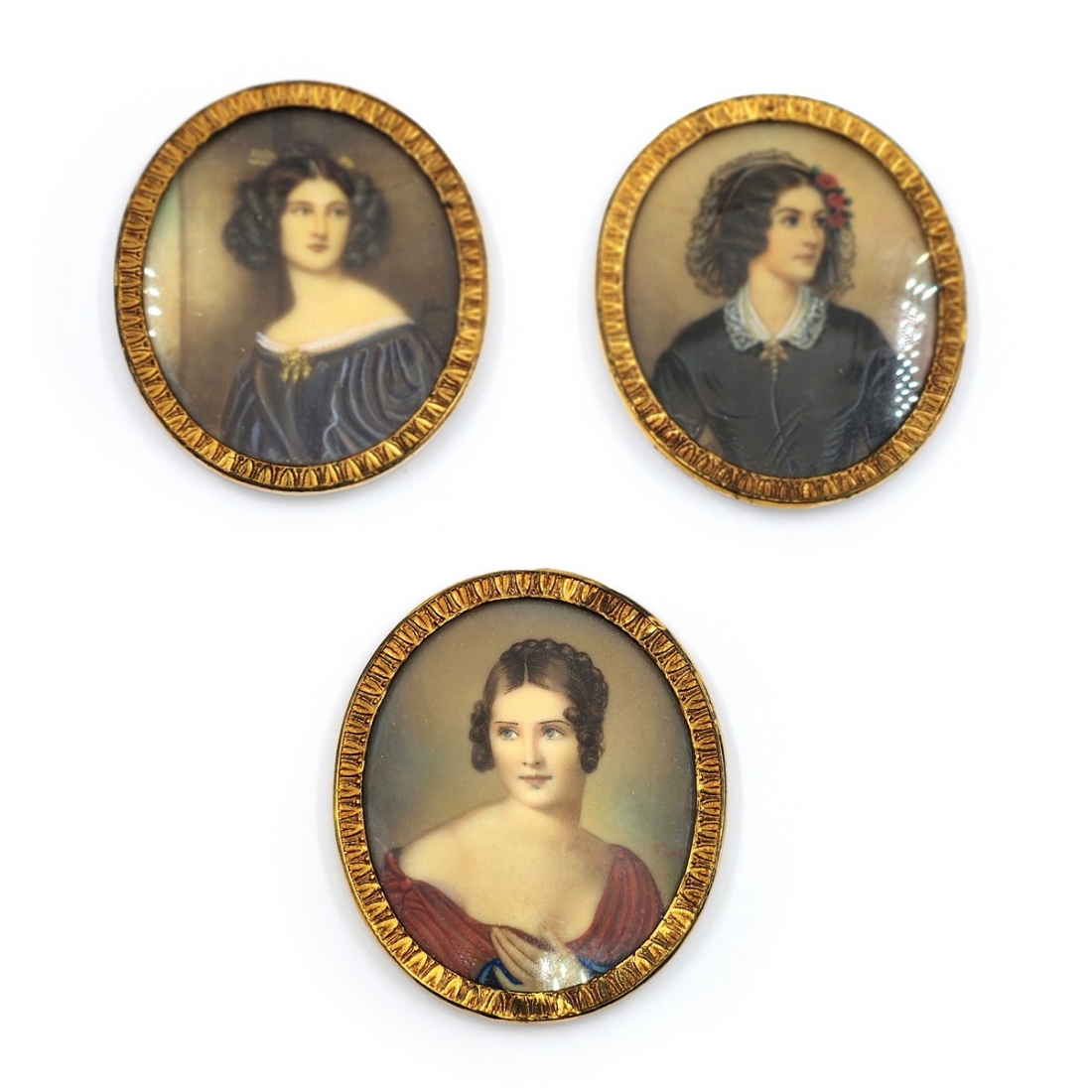 3 מיניאטורות מצויירות ביד על לוחיות בקליט וחתומות על פי ציורי מופת ידועים