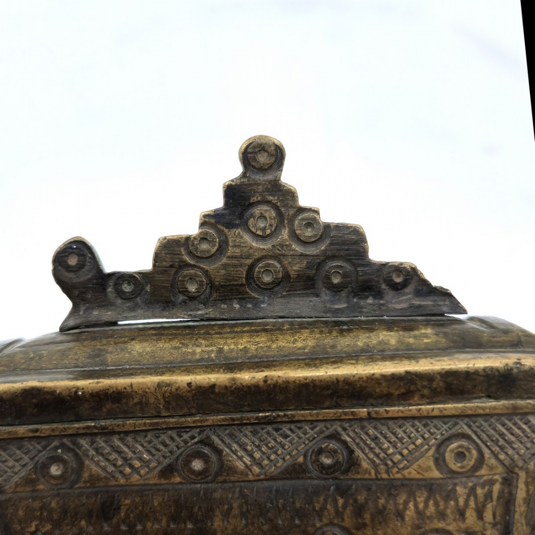 חוסר לקצה הימני של העיטור על המכסה (מצולם),