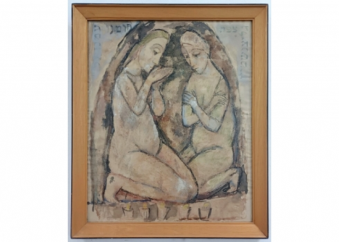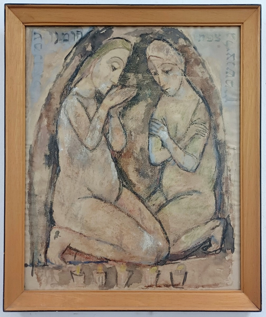 עמנואל רומנו גליצנשטיין - 'שתי נשים' - אקוורל על נייר, חתום