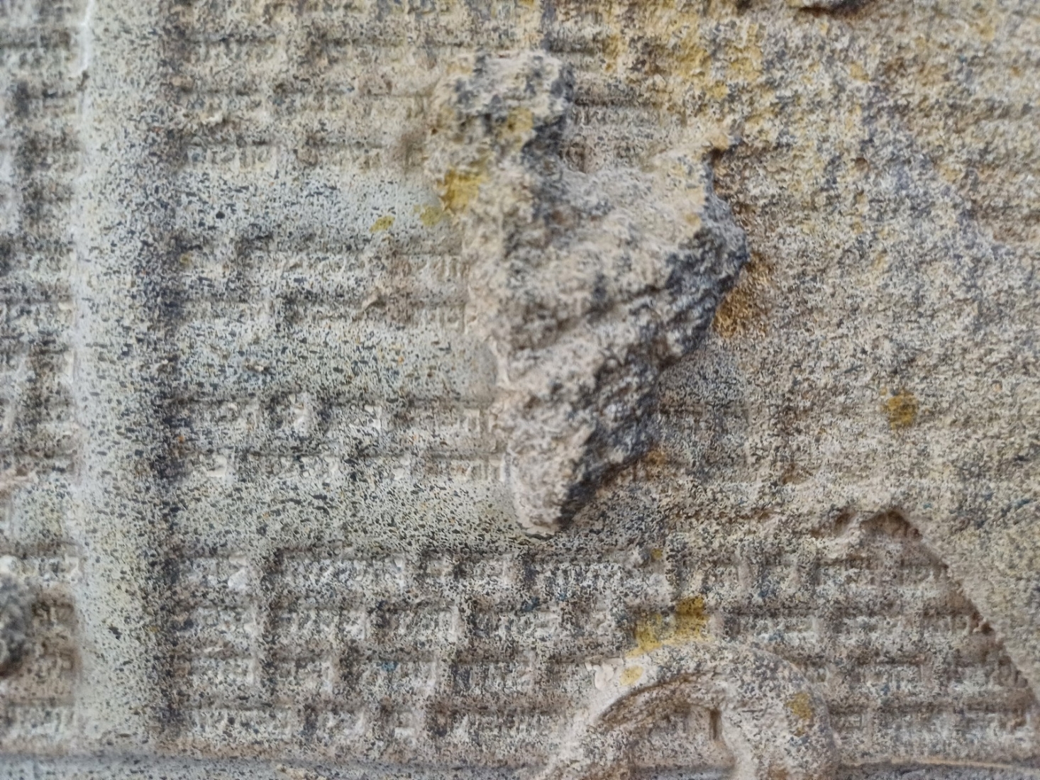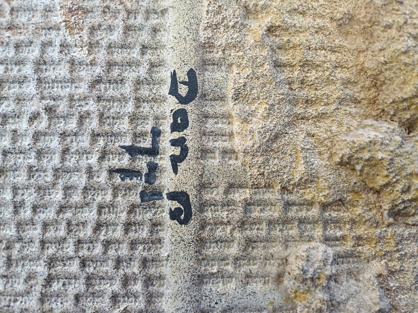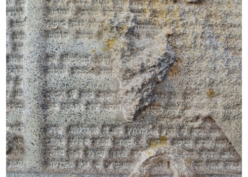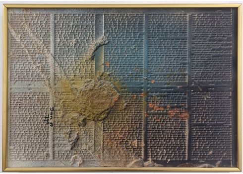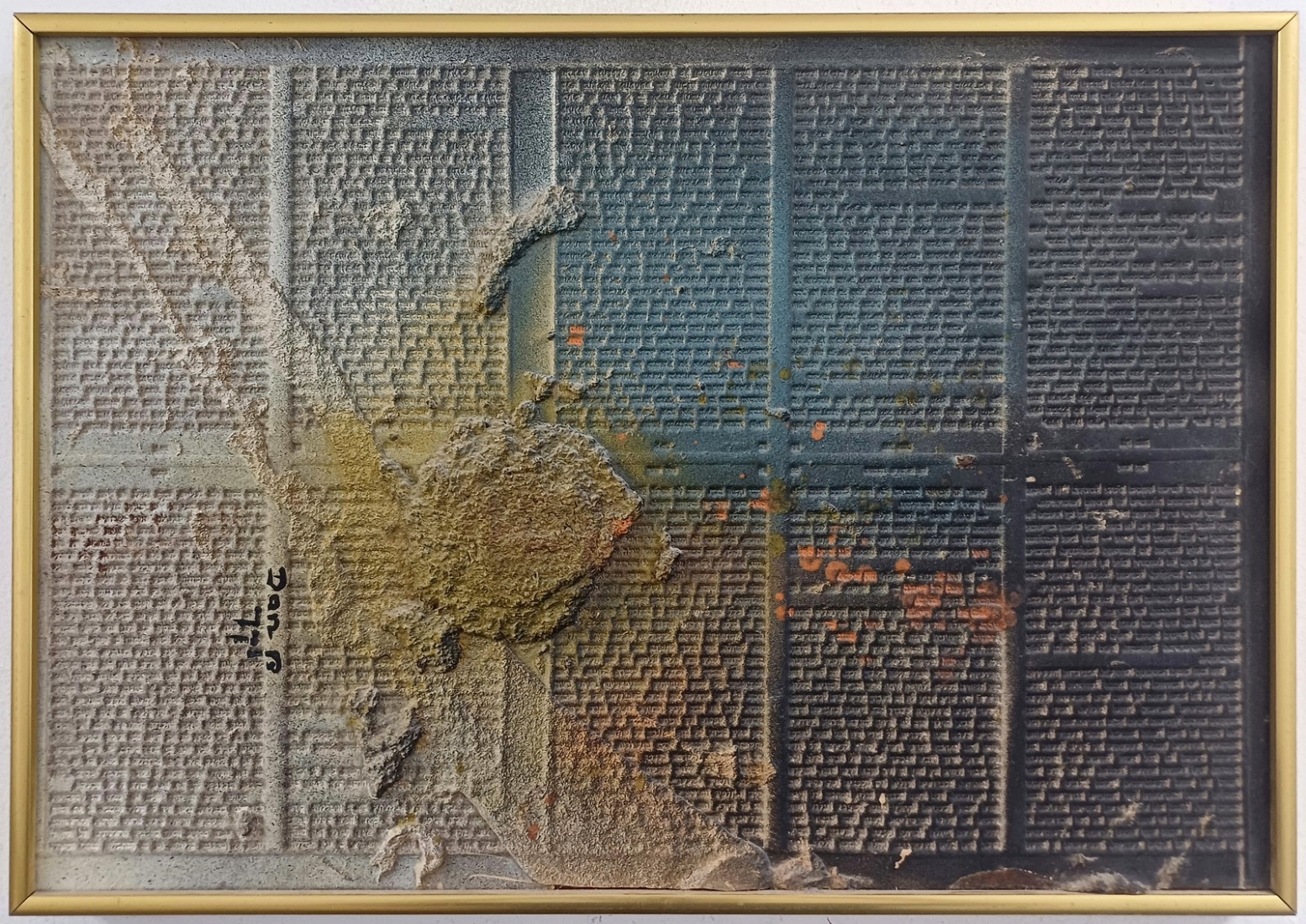 דן לוין (ריכטר) - 'חומה מוכתמת' - טכניקה מעורבת על לוח, חתום ומתוארך: 1977