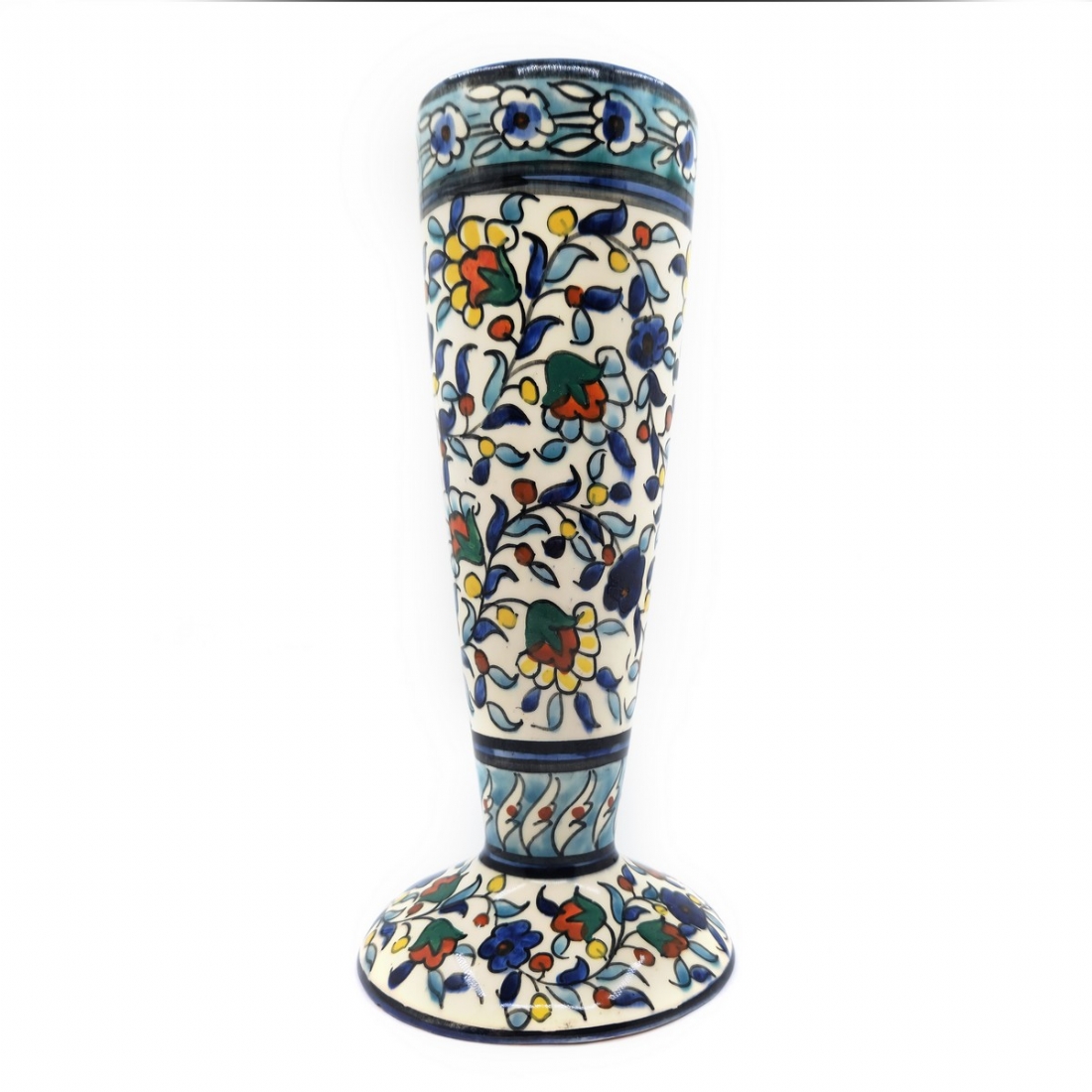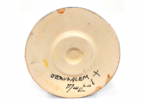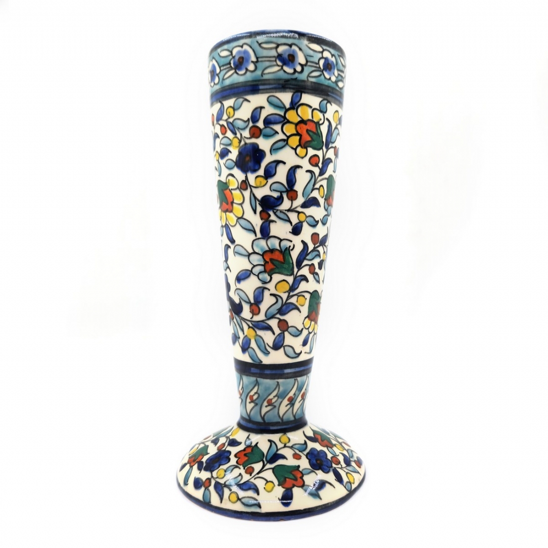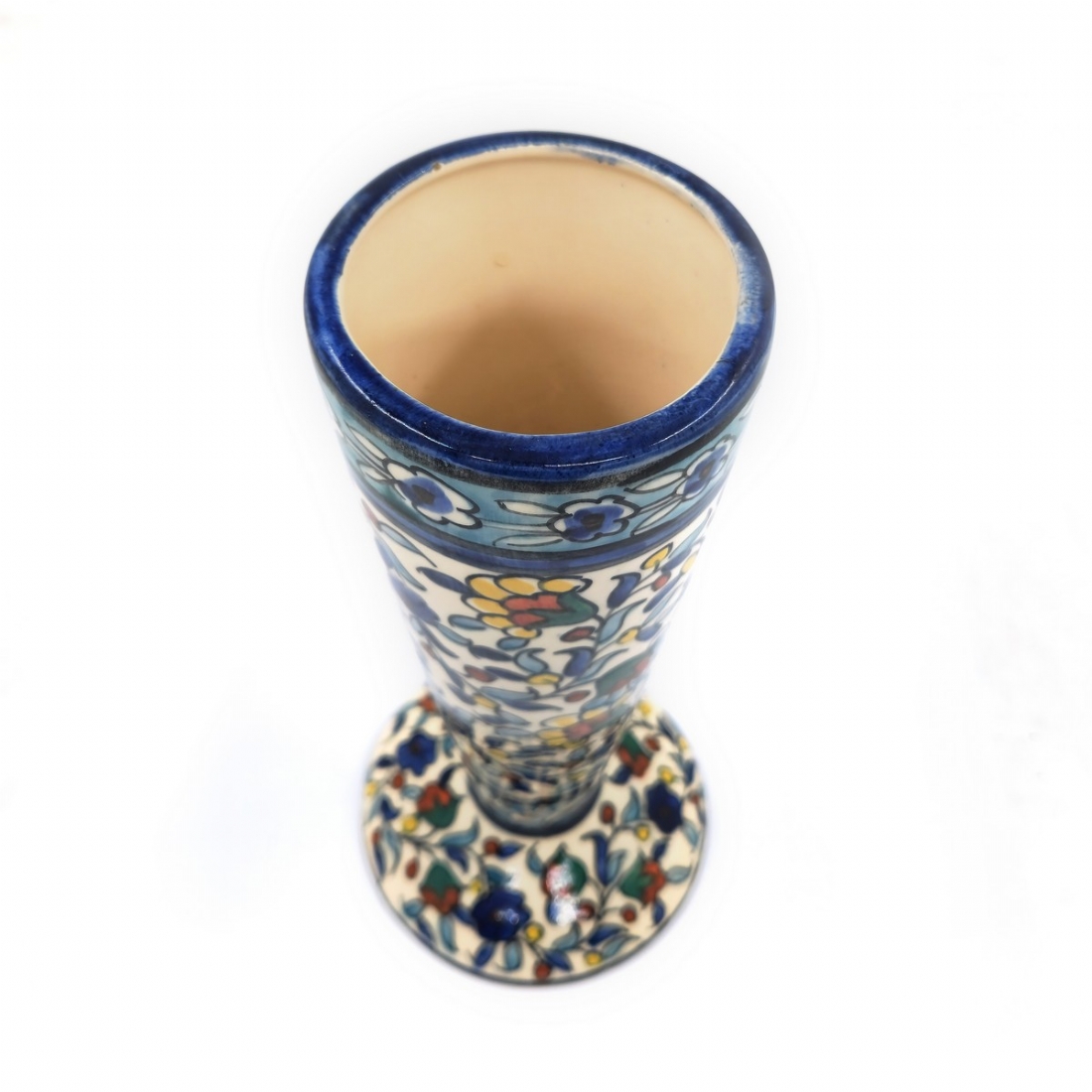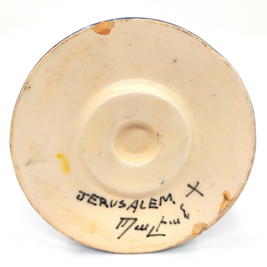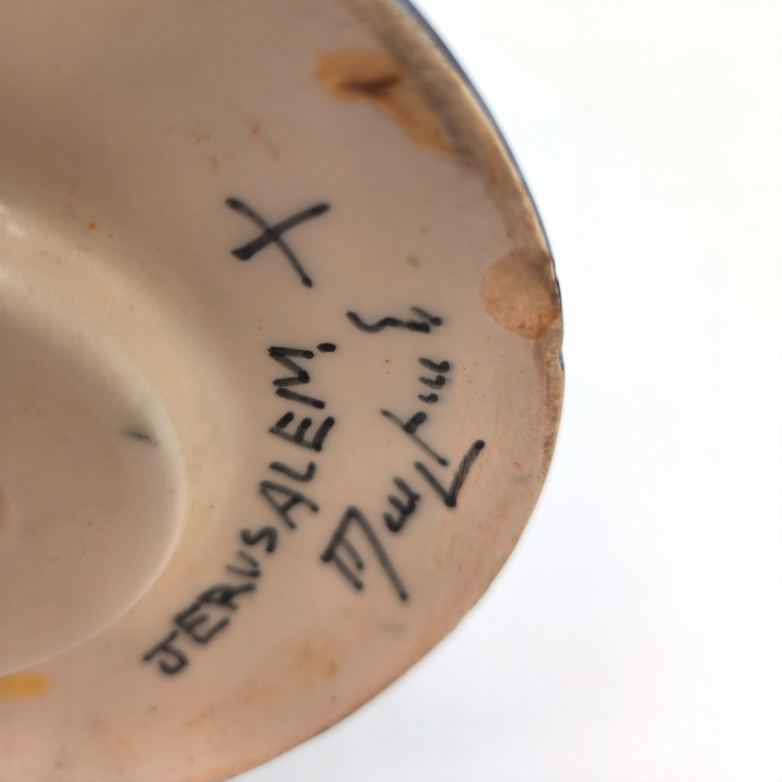אגרטל קרמיקה ארמני מעוטר בעבודת יד וחתום על ידי הסדנה של בליאן בירושלים