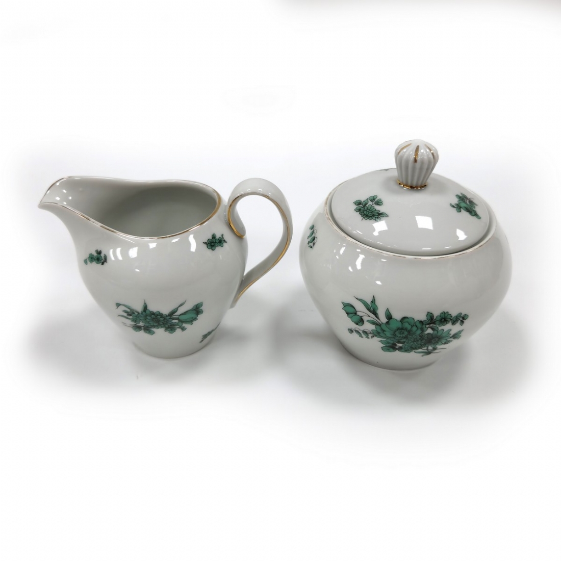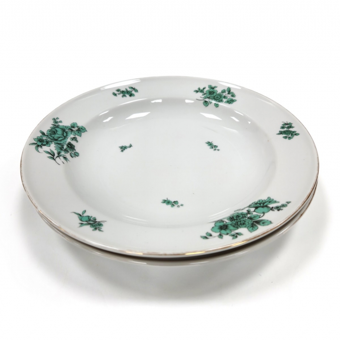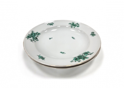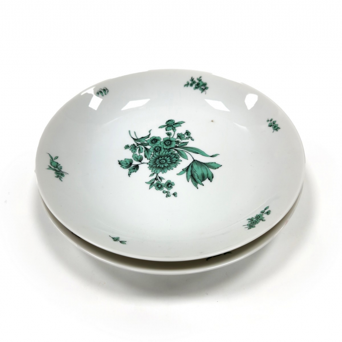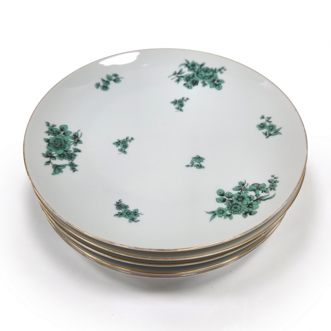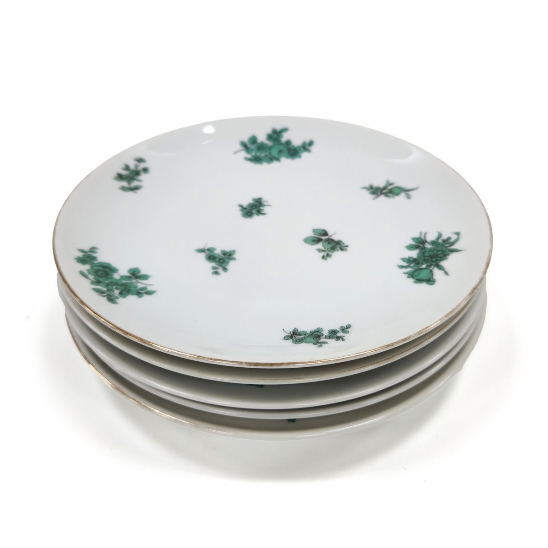 חלקי סט אוכל גרמני עשוי פורצלן מעוטר בהדפס ירוק וחתום
