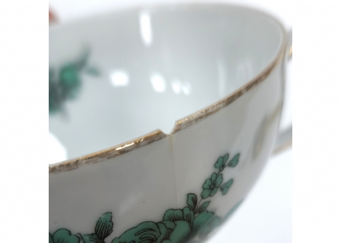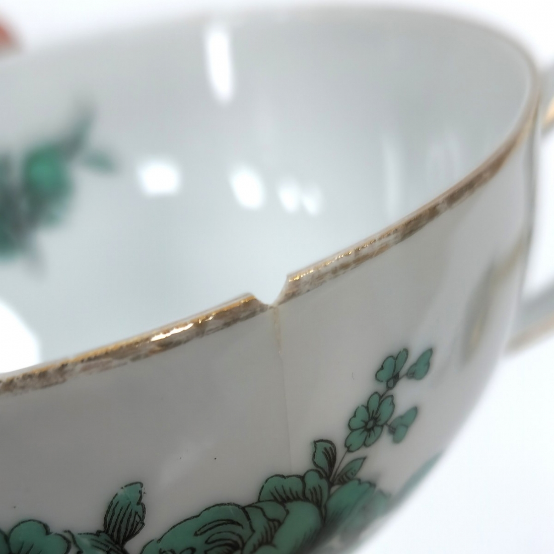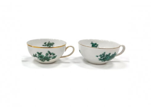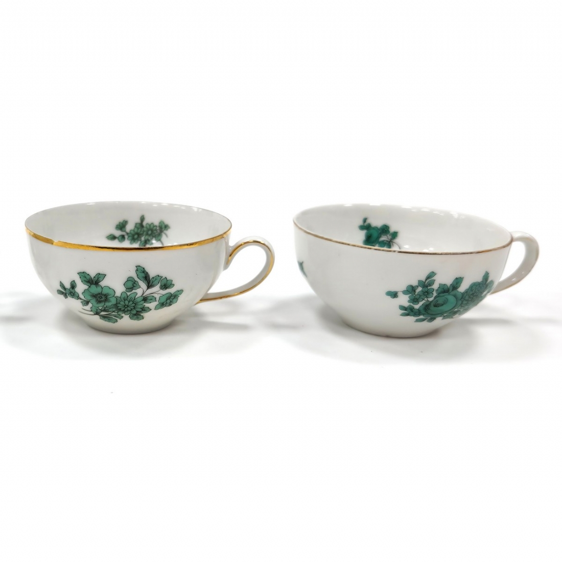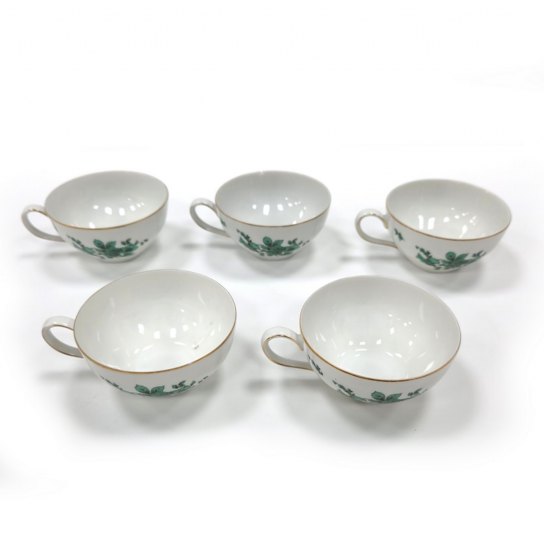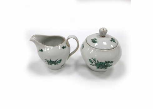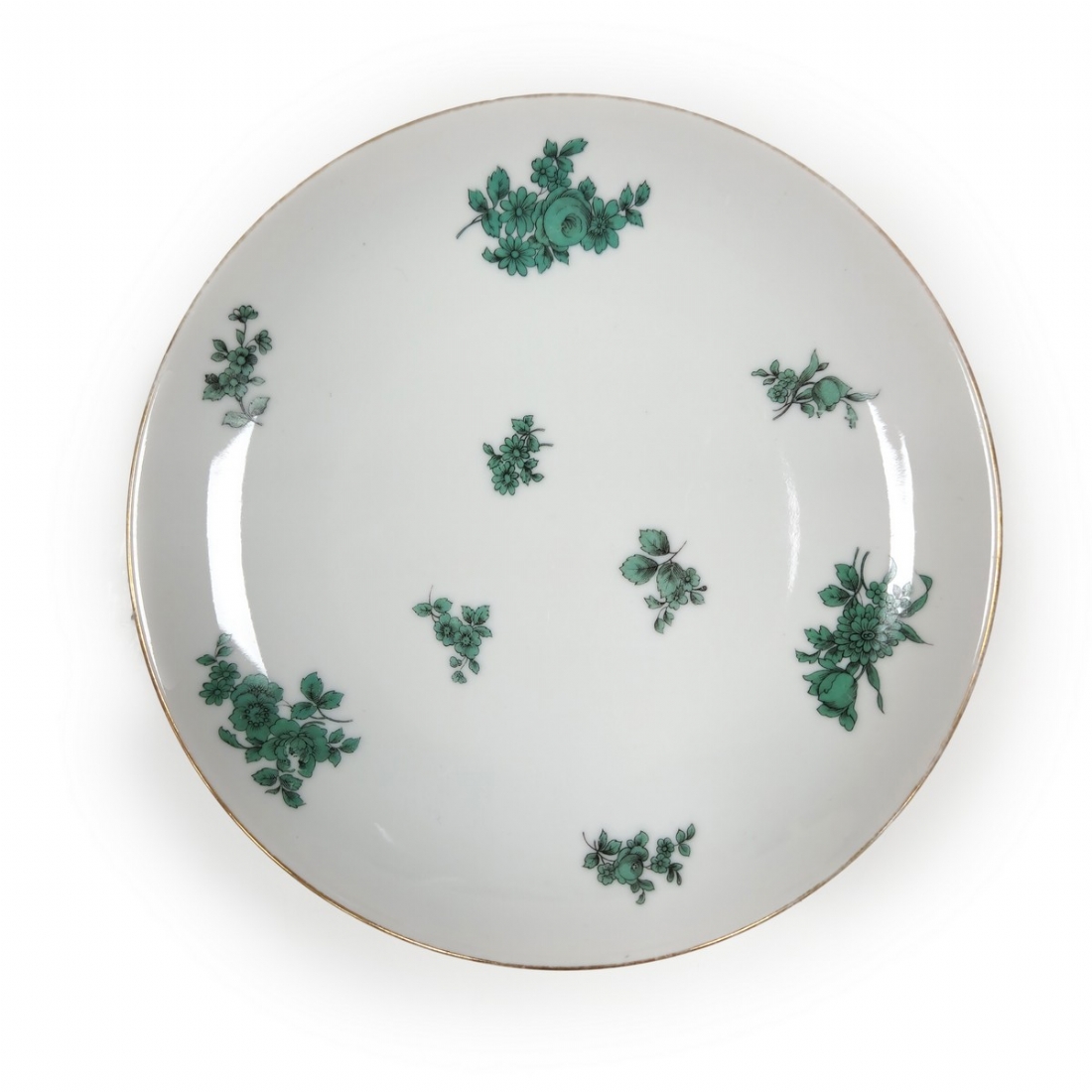 חלקי סט אוכל גרמני עשוי פורצלן מעוטר בהדפס ירוק וחתום