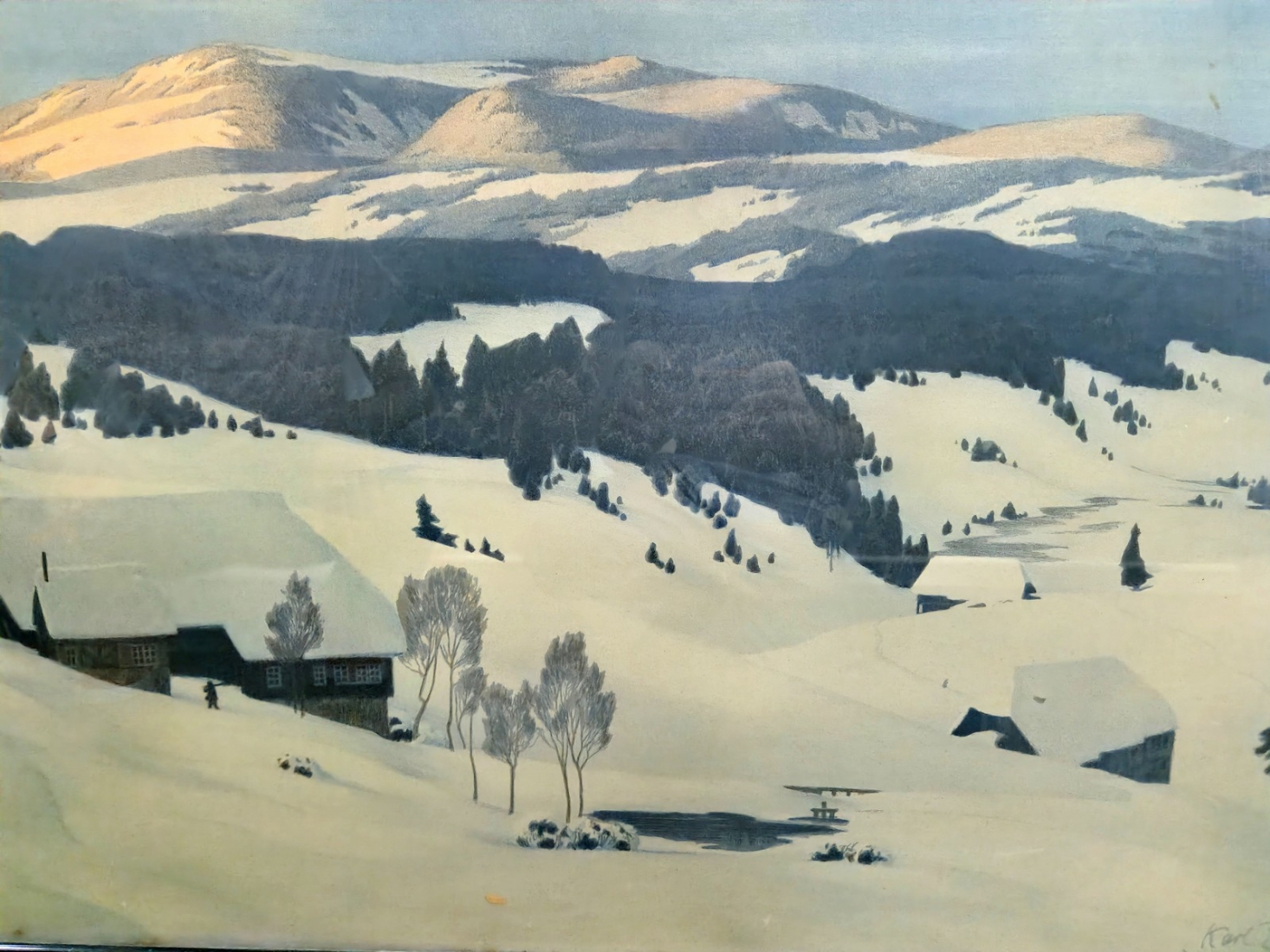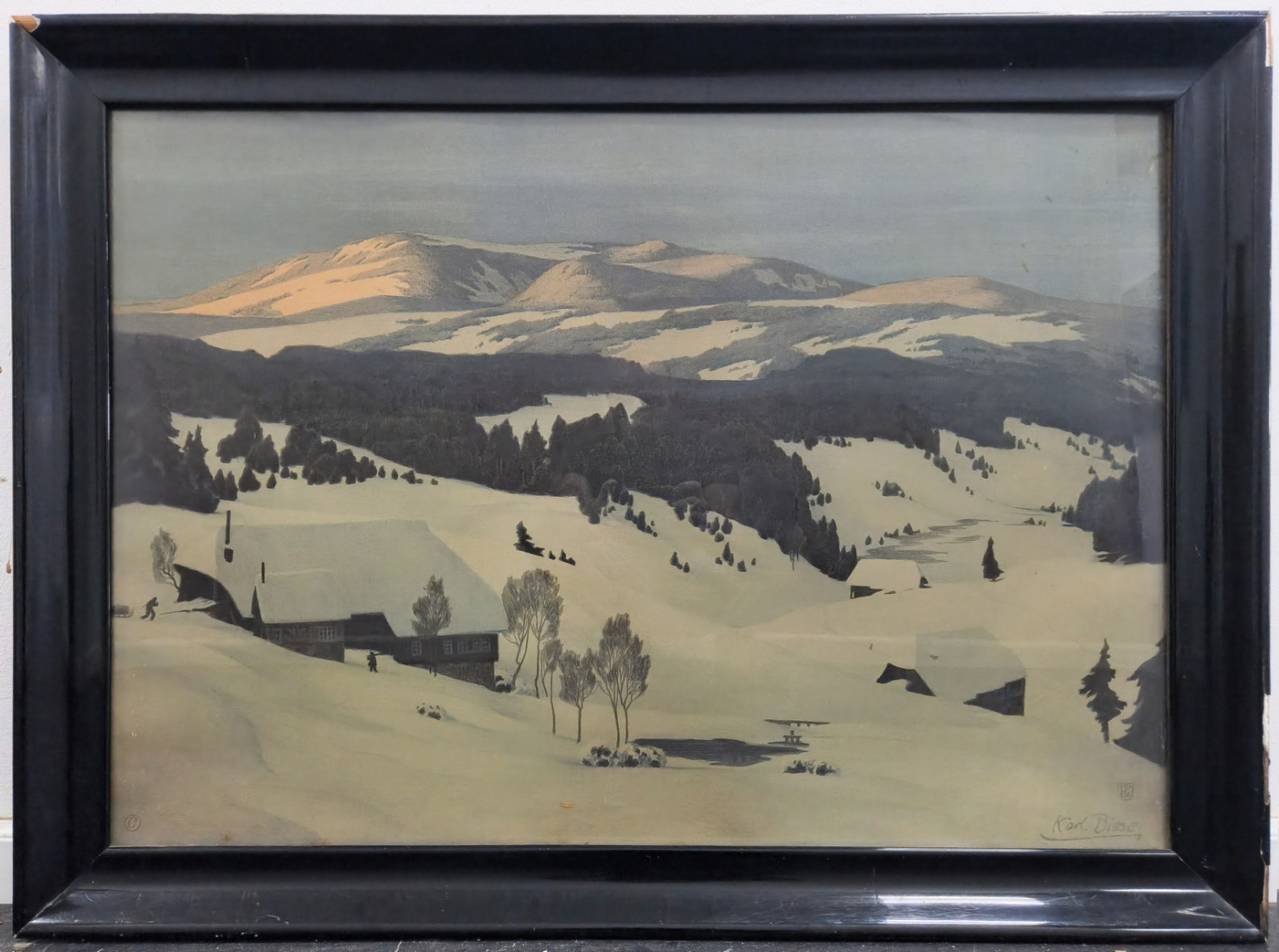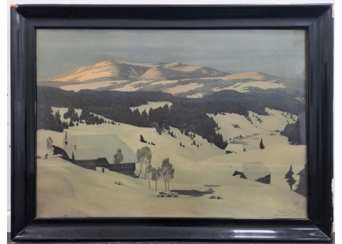 קרל ביזה (1863-1926, גרמניה) Karl Biese ליטוגרפיה עתיקה גדולה ויפה חתומה בפלטה
