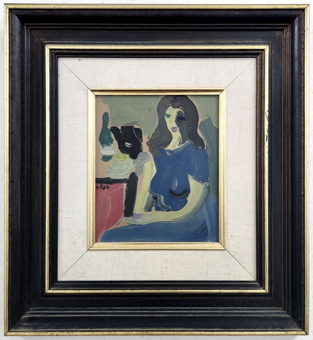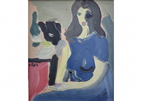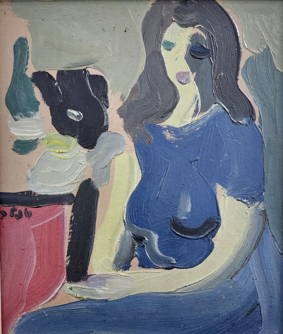 שמואל טפלר (Samuel Tepler) - 'אישה ועששית' - שמן על לוח, חתום