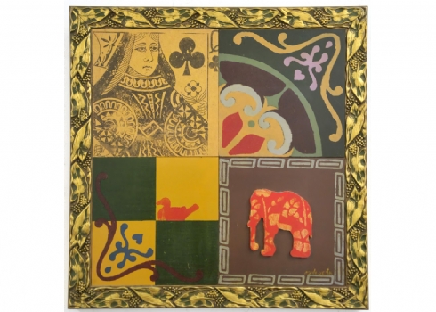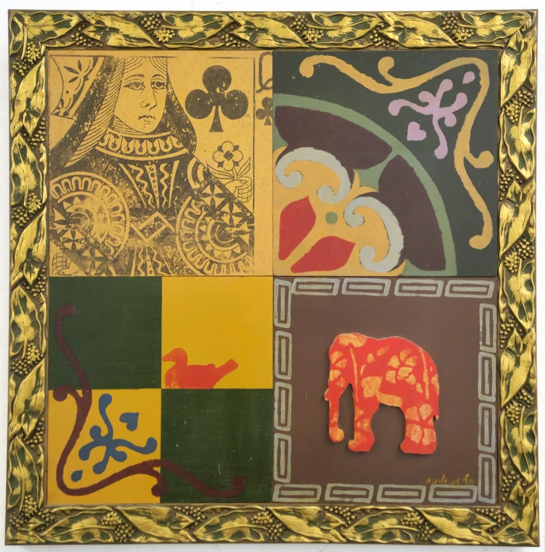 אליעז סלונים (נ. 1958) - 'מופשט 5', שמן וטכניקה מעורבת על לוחות עץ, חתום